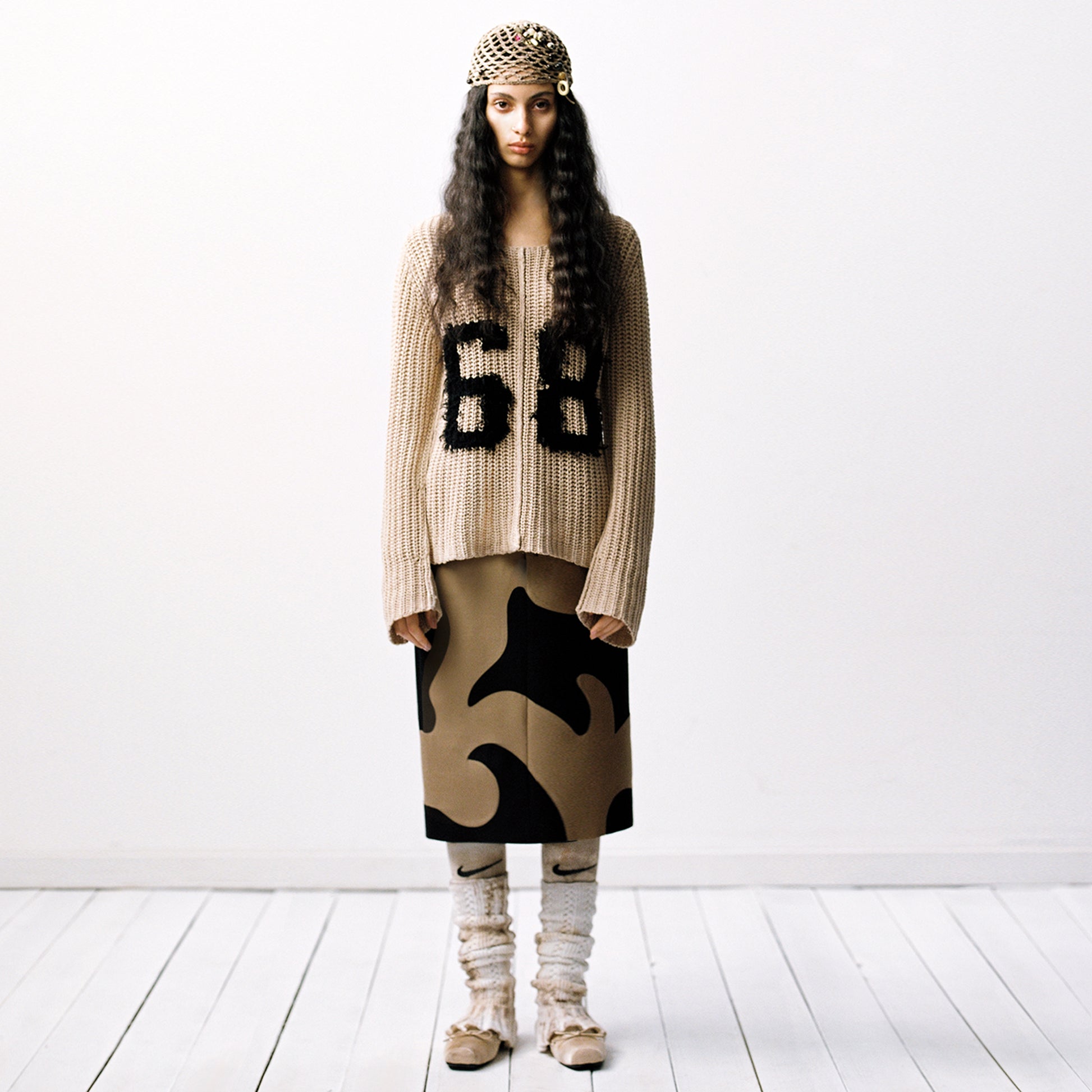 The beige pattern is inspired by the free and unfettered Cowboy, simplifying and extracting contours, and covering them on the skirt body.