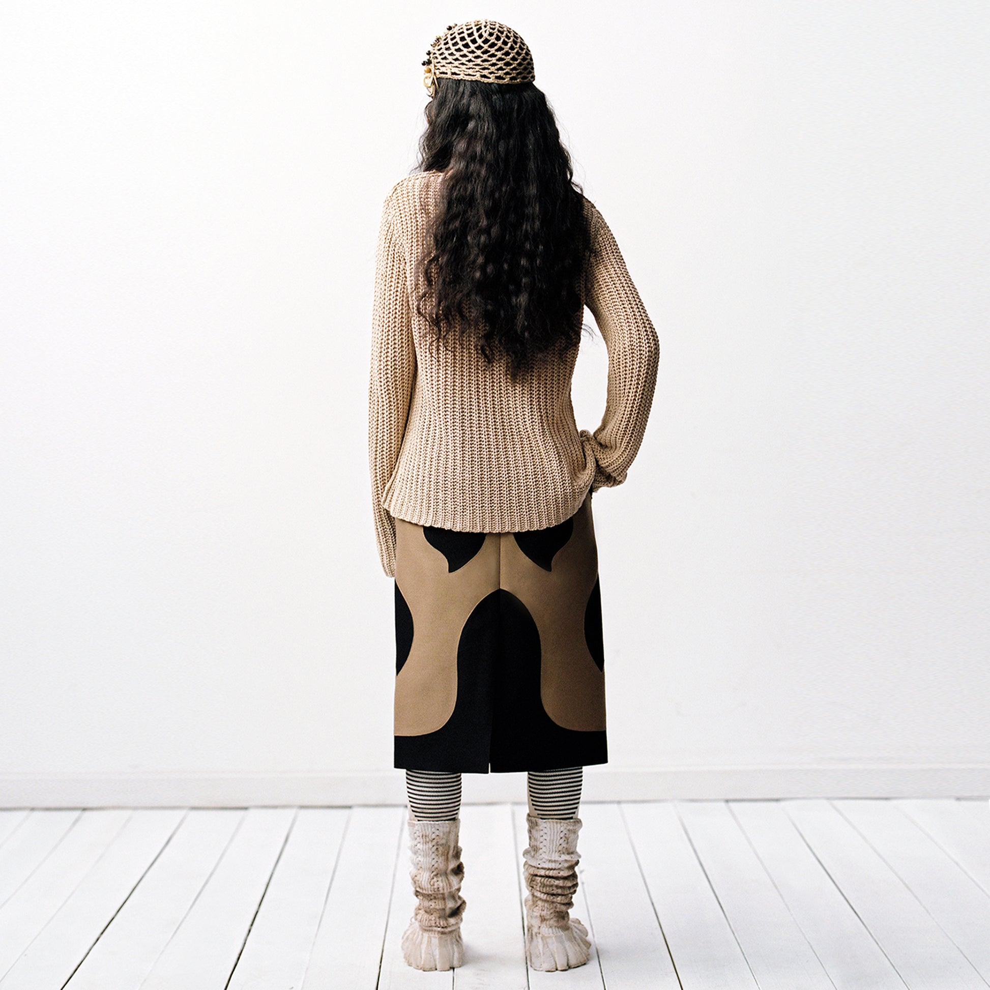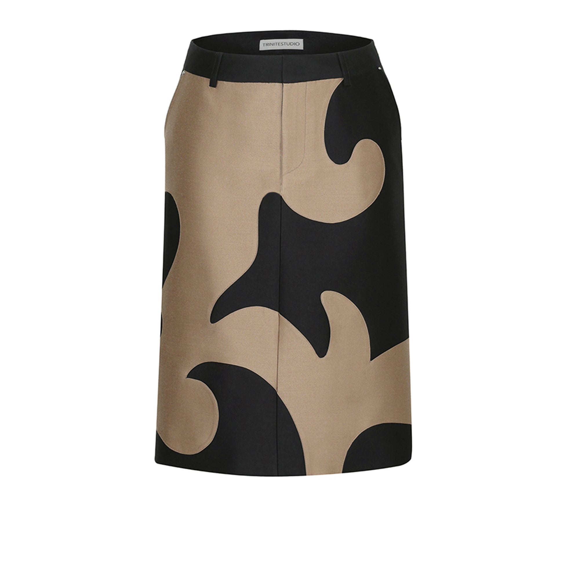 Black and Beige Ethnic Pattern Wool-Silk Skirt