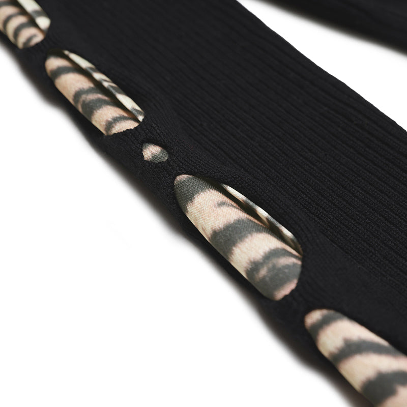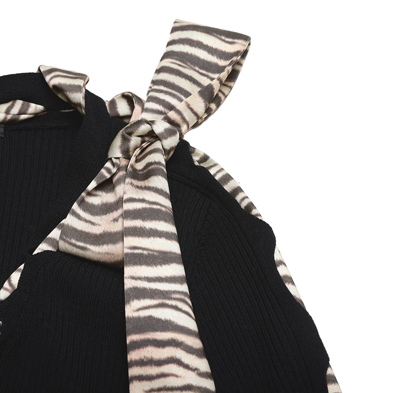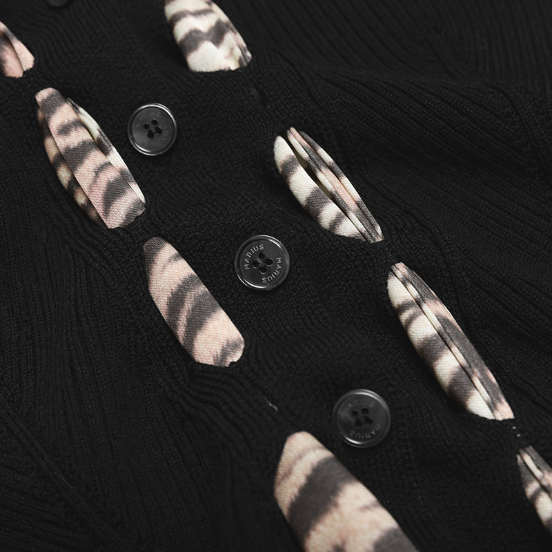 Black Hollowed-out Scarf Decorative Knit Cardigan