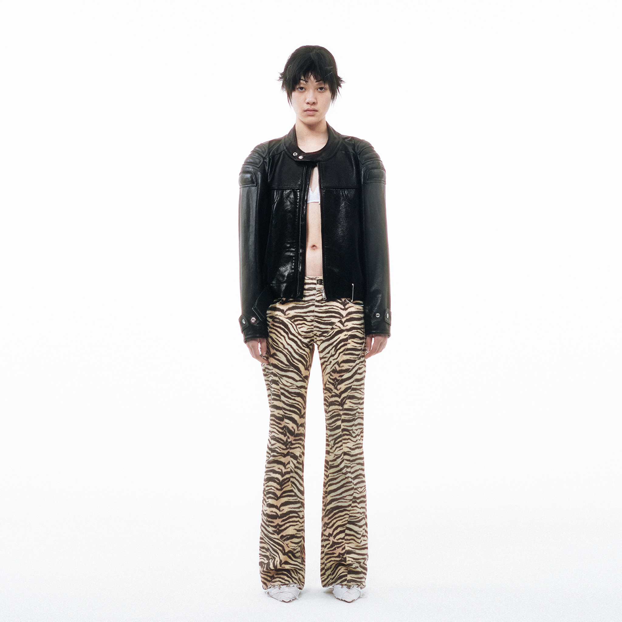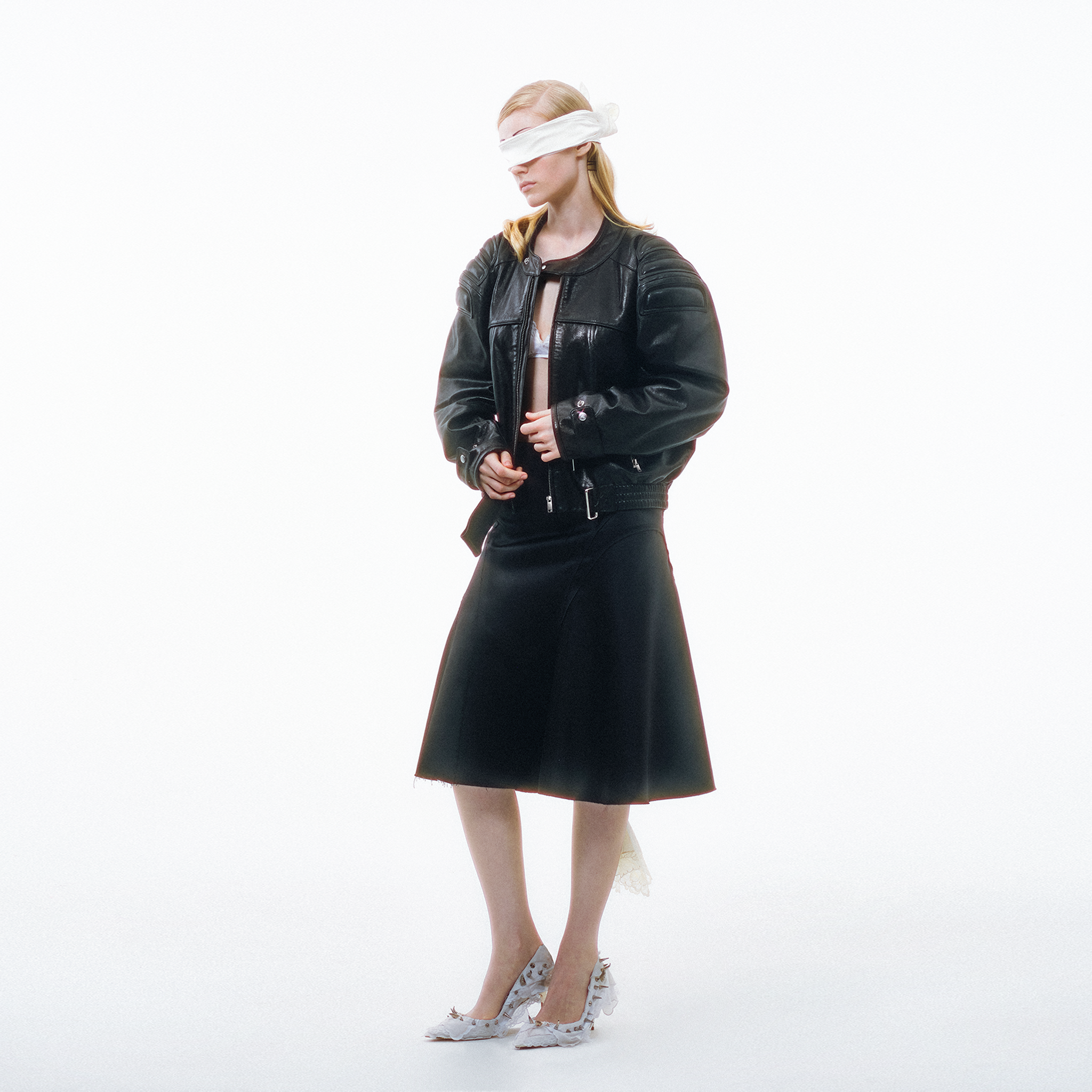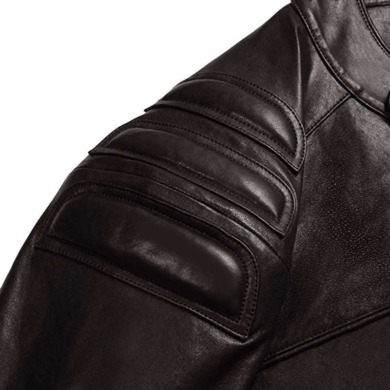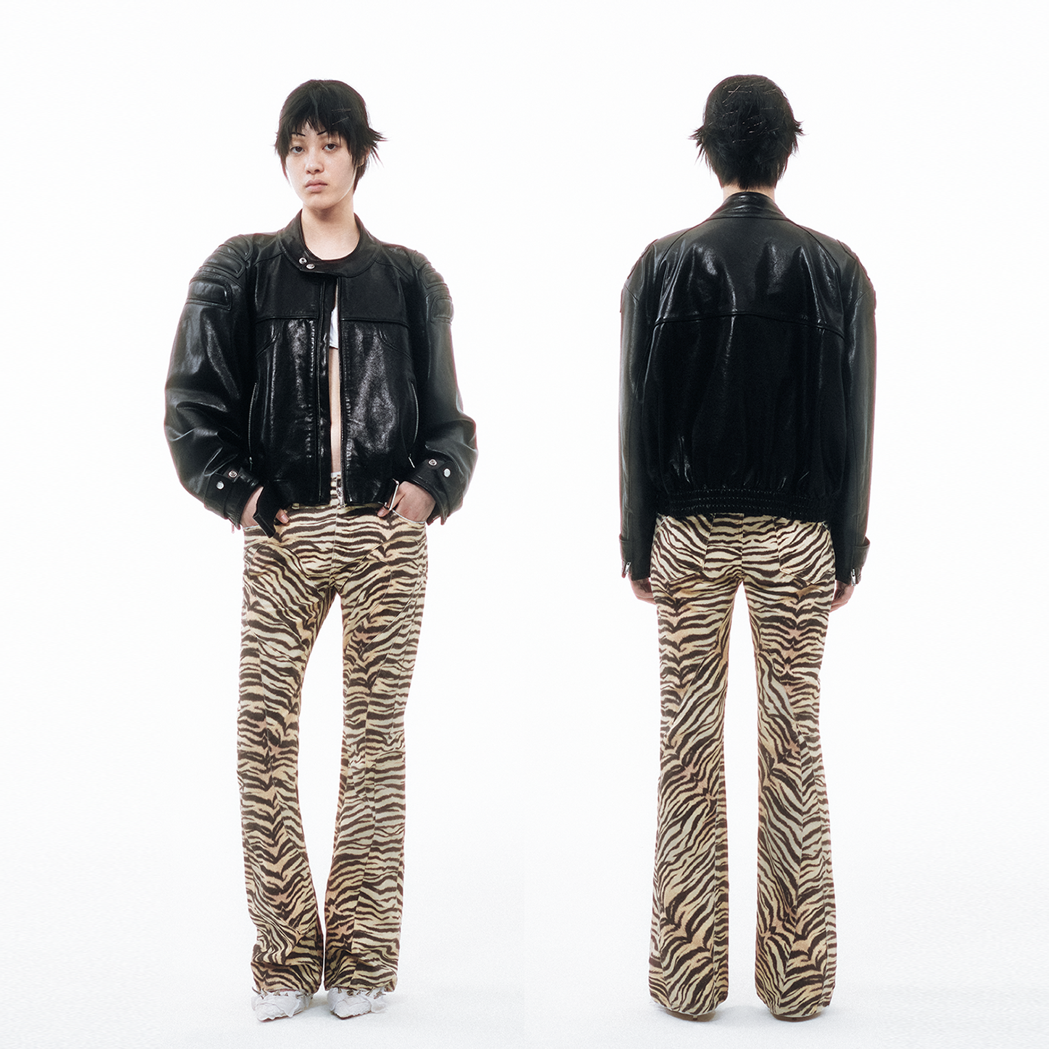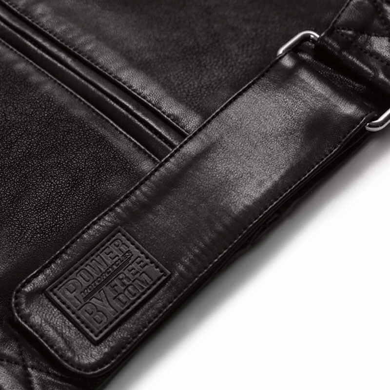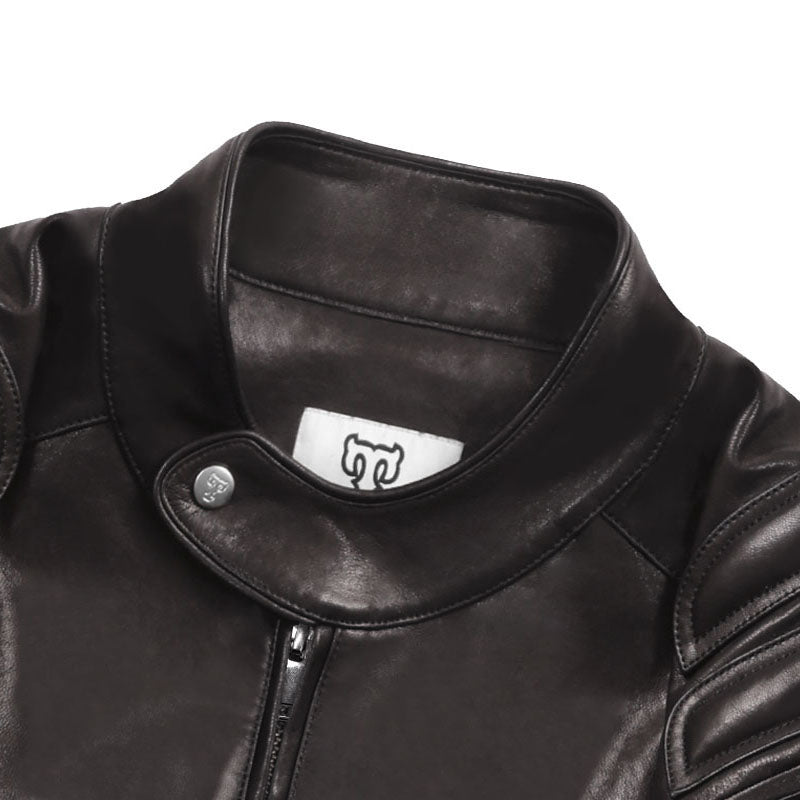 Inspired by vintage motorcycle culture, this black washed waxed leather jacket is crafted from soft sheepskin that undergoes a tumbling process, resulting in natural wrinkles and a supple, soft texture. The oversized silhouette blends a casual yet powerful visual impact, while padded shoulders enhance the motorcycle-inspired aesthetic and structural strength.