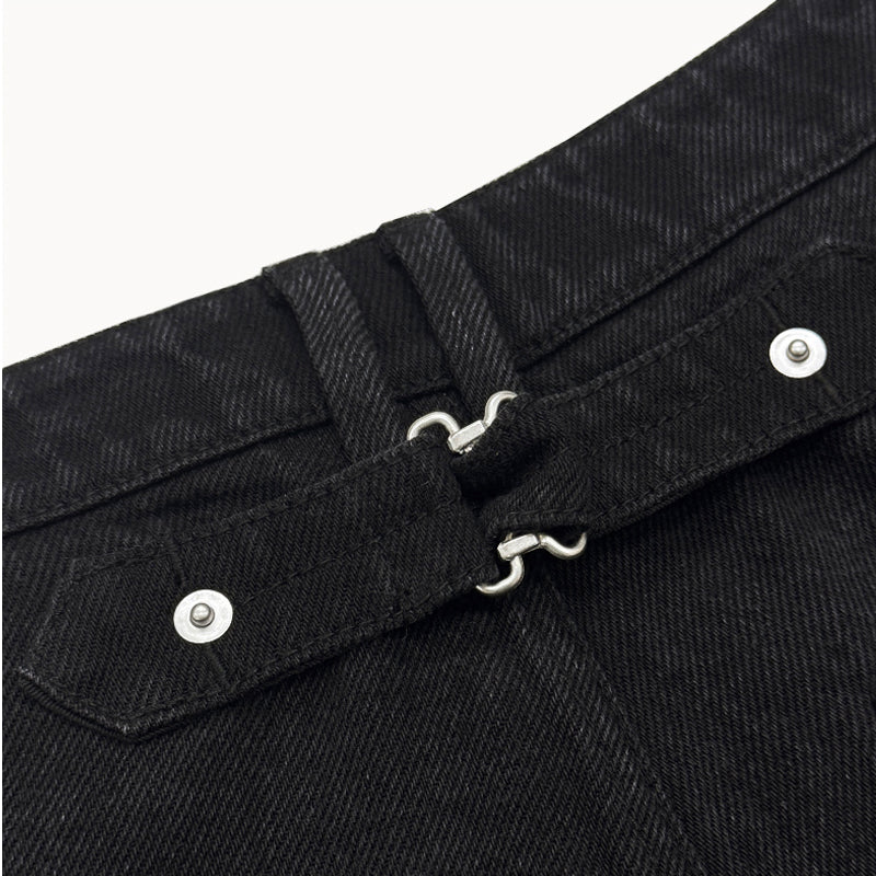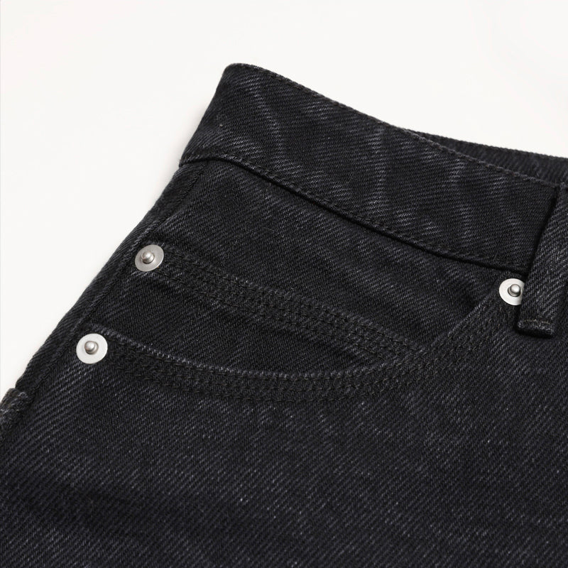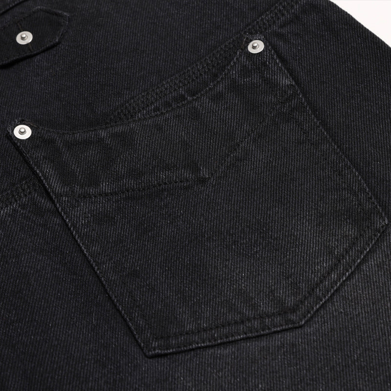 These jeans are made from a coarse twill denim fabric with Tencel, offering natural drape and a smooth, structured feel. After a wash treatment, the fabric takes on a naturally faded, worn-in look, reminiscent of long-term denim wear. Inspired by classic 1920s-1930s denim designs, the black base is simple and versatile, while maintaining a rugged edge.