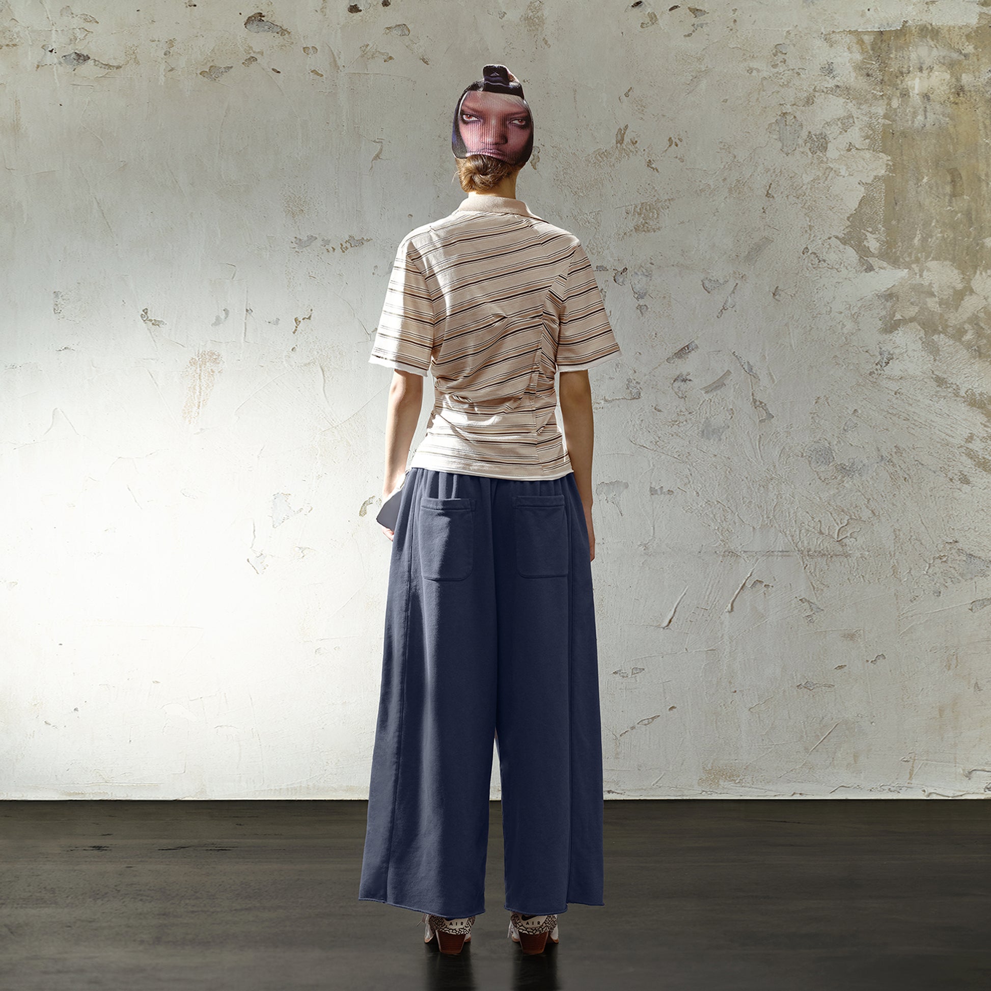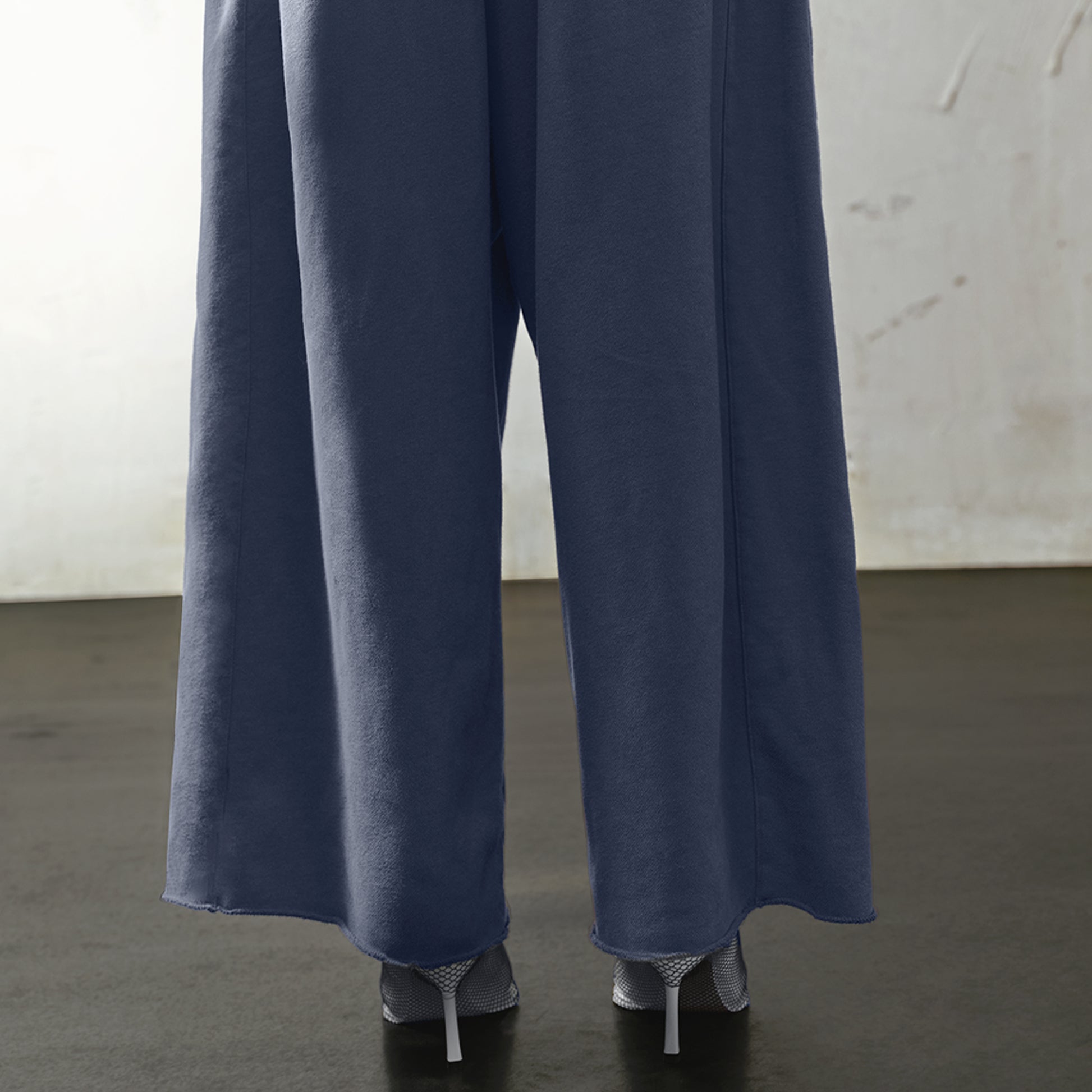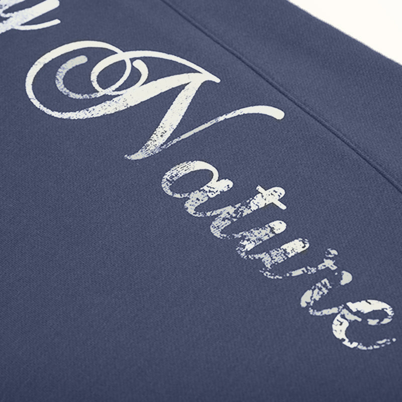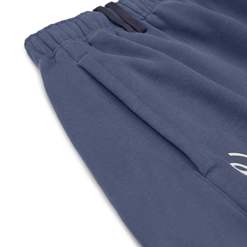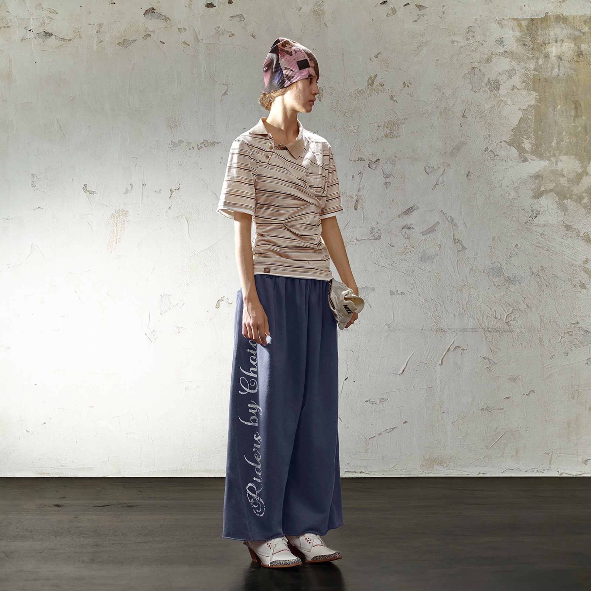 This cropped sport pant is crafted in a washed-out denim blue hue, creating a distinctive vintage aesthetic. The piece is accentuated with slogan prints, infusing it with streetwise attitude and personal expression. Its relaxed fit and cropped length offer a casual yet sharp look, making it versatile for various everyday styles.