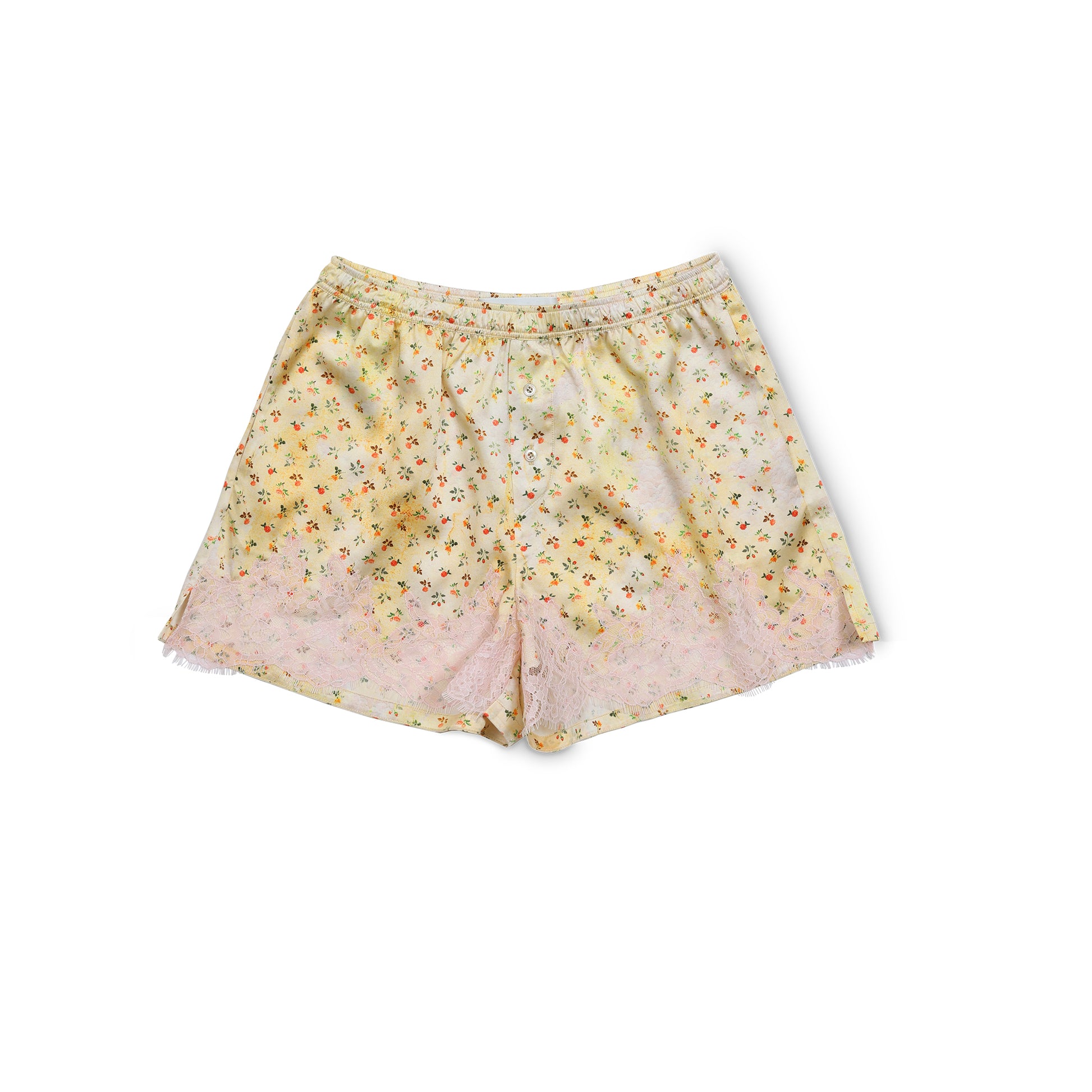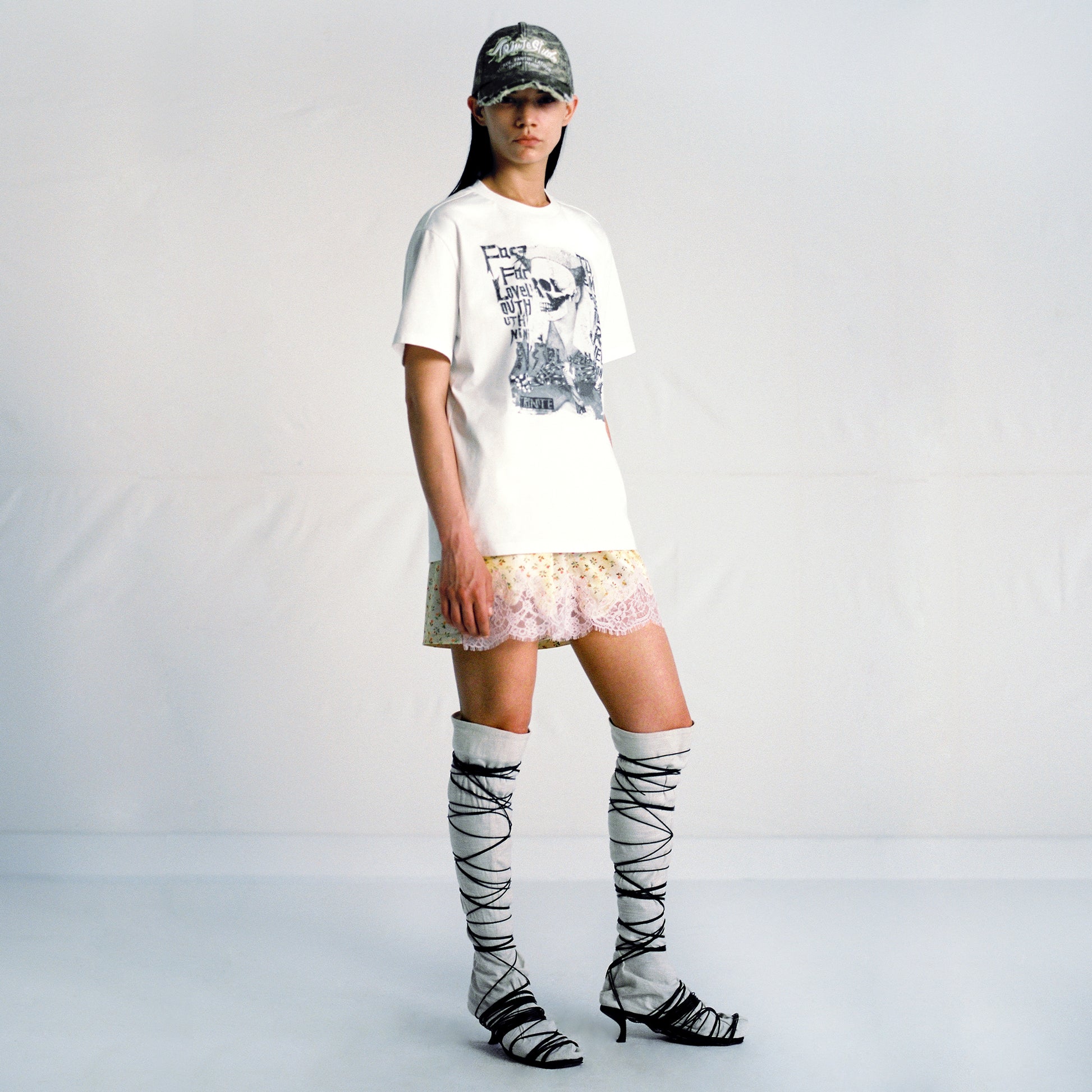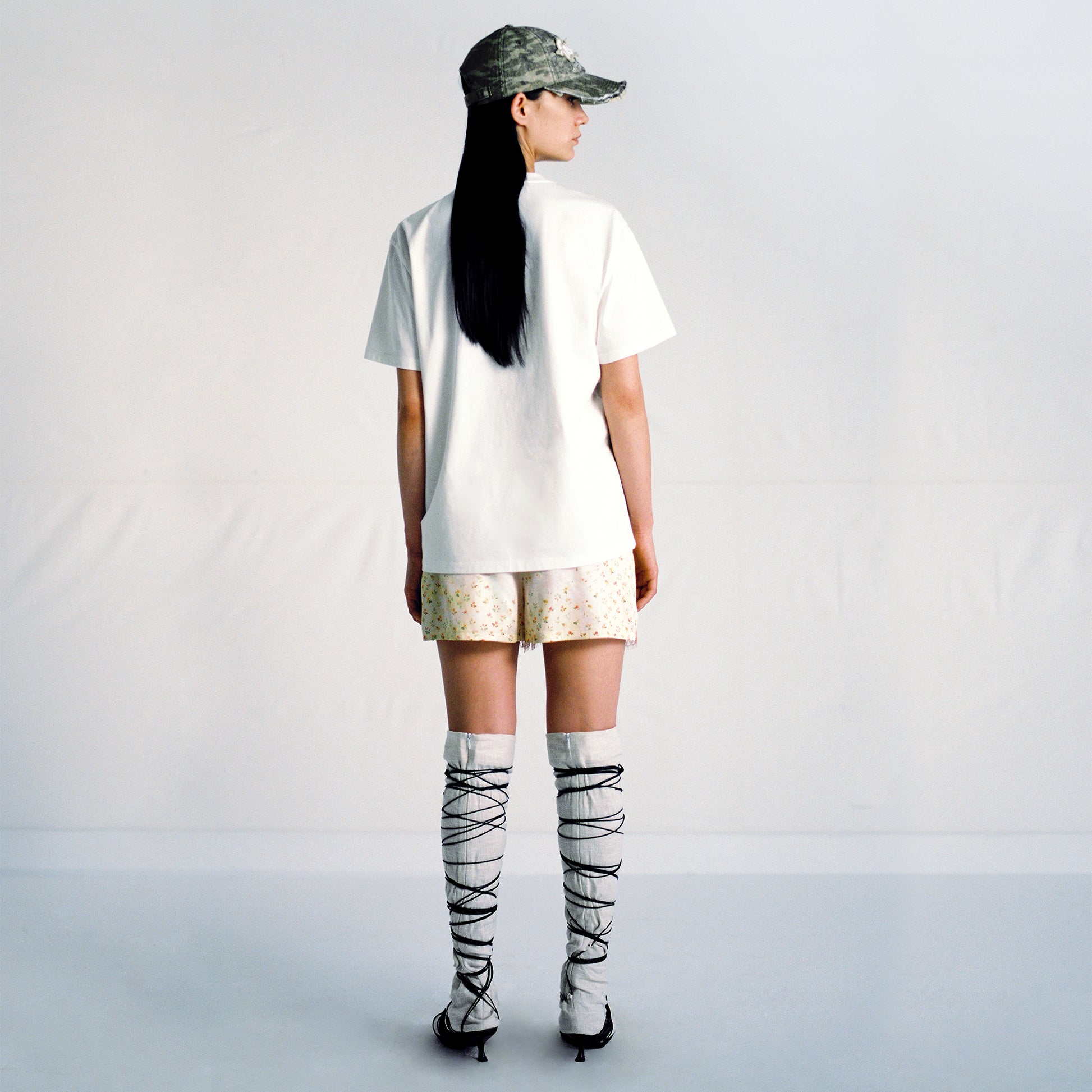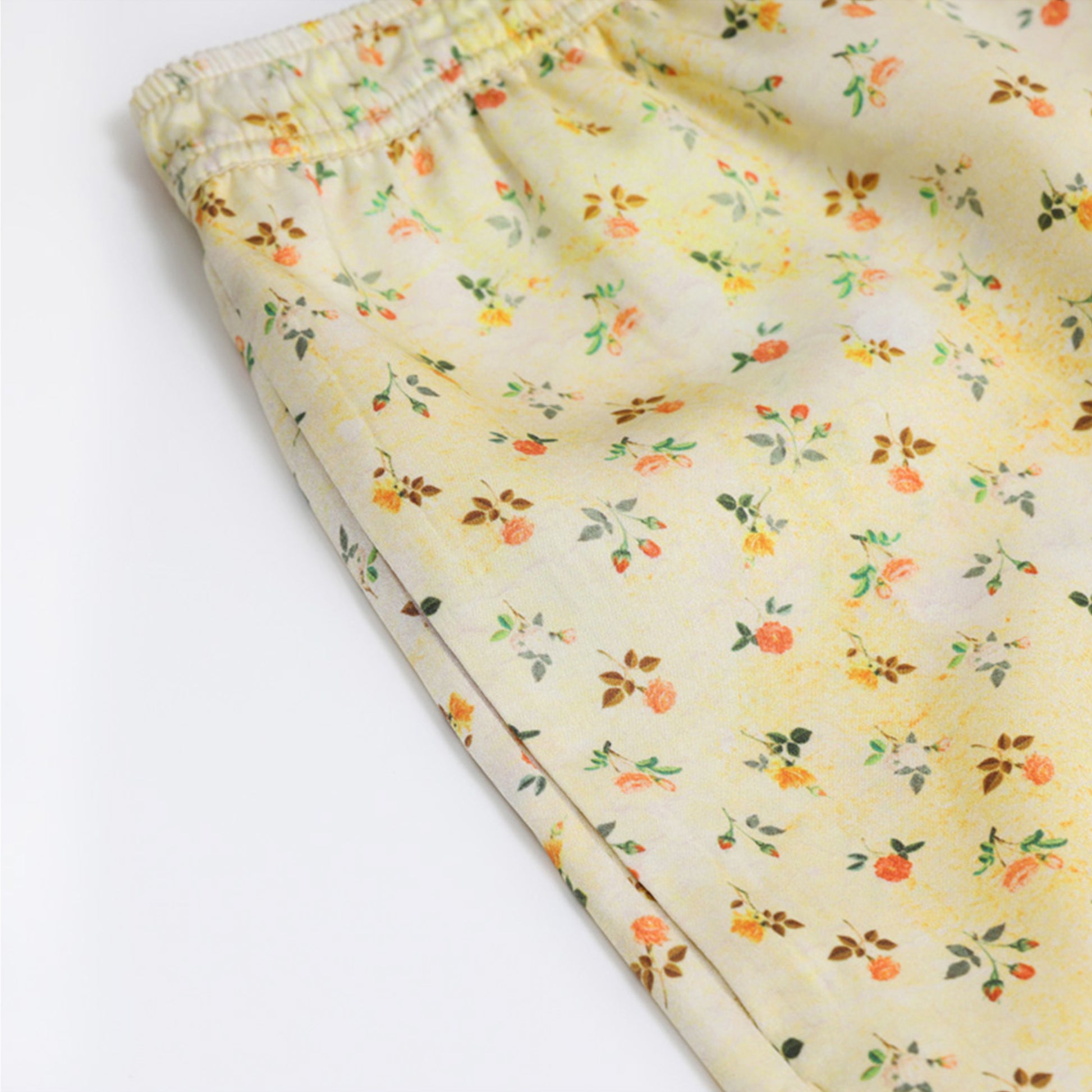 Independently photographed and designed by TRINITEstudio, this piece features eight different classic rose patterns clustered on a low-saturation yellow base fabric. The irregular distressed and rusty effects overlaid with faint nude lace break the girlishness of the floral pattern, adding a street-style edge and visual weight.