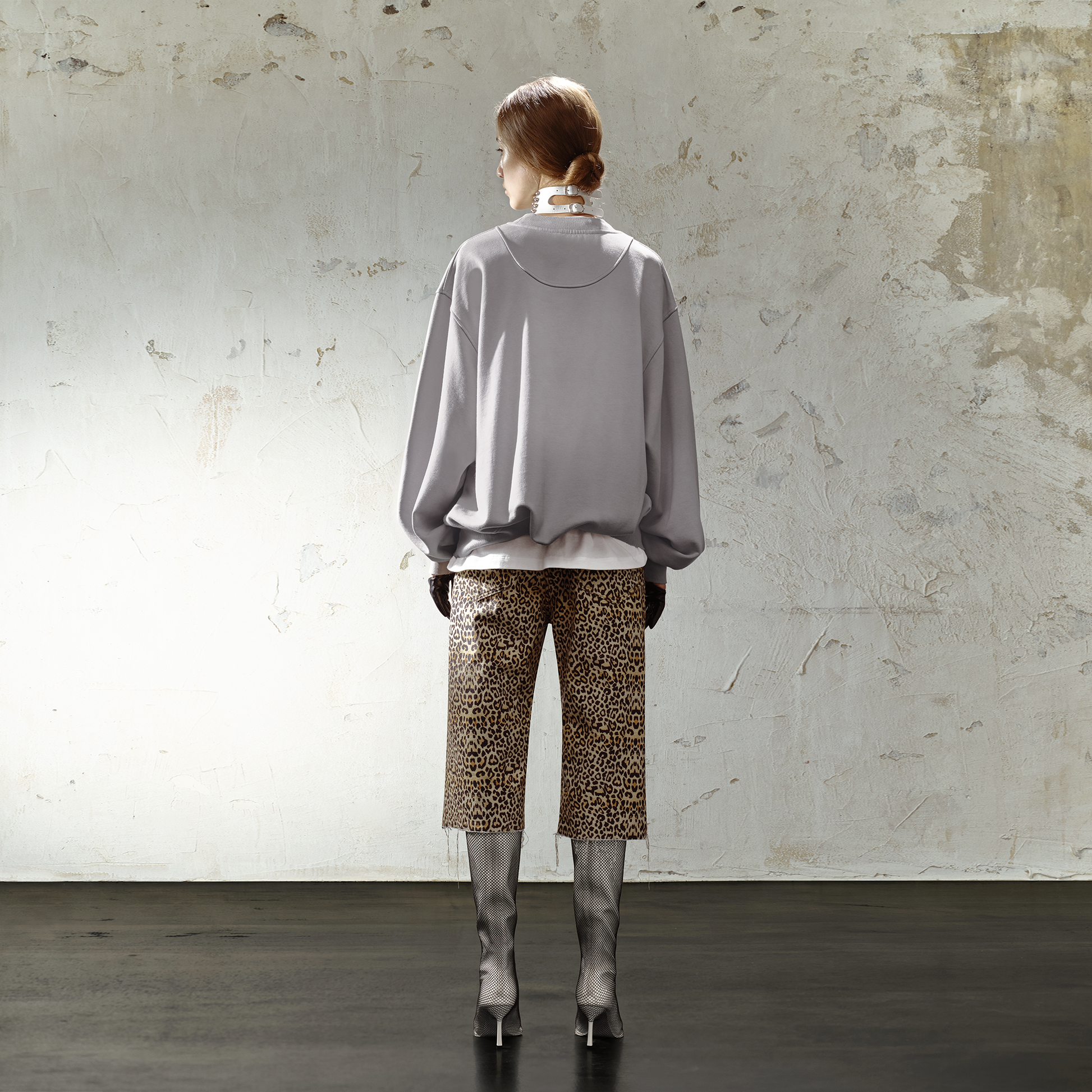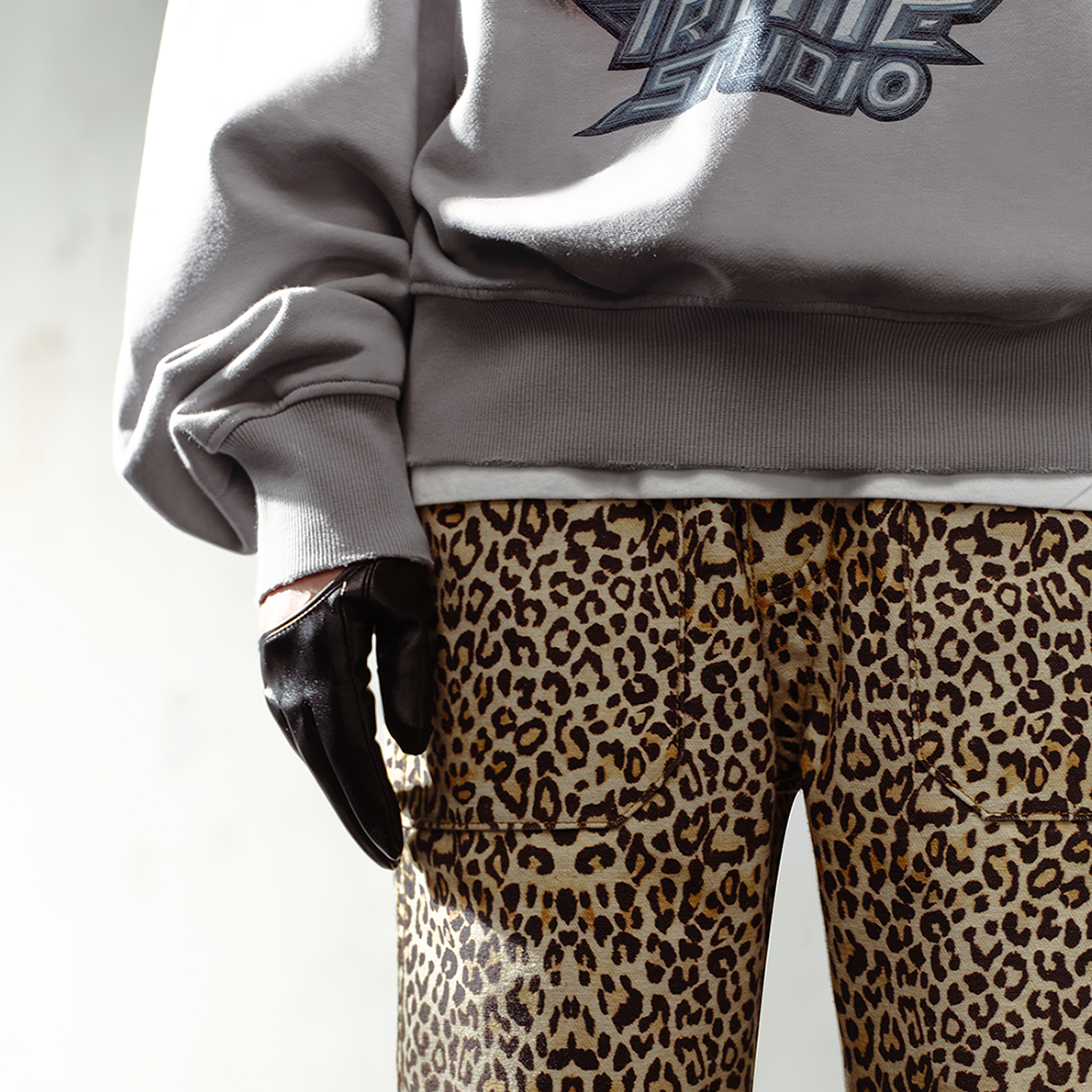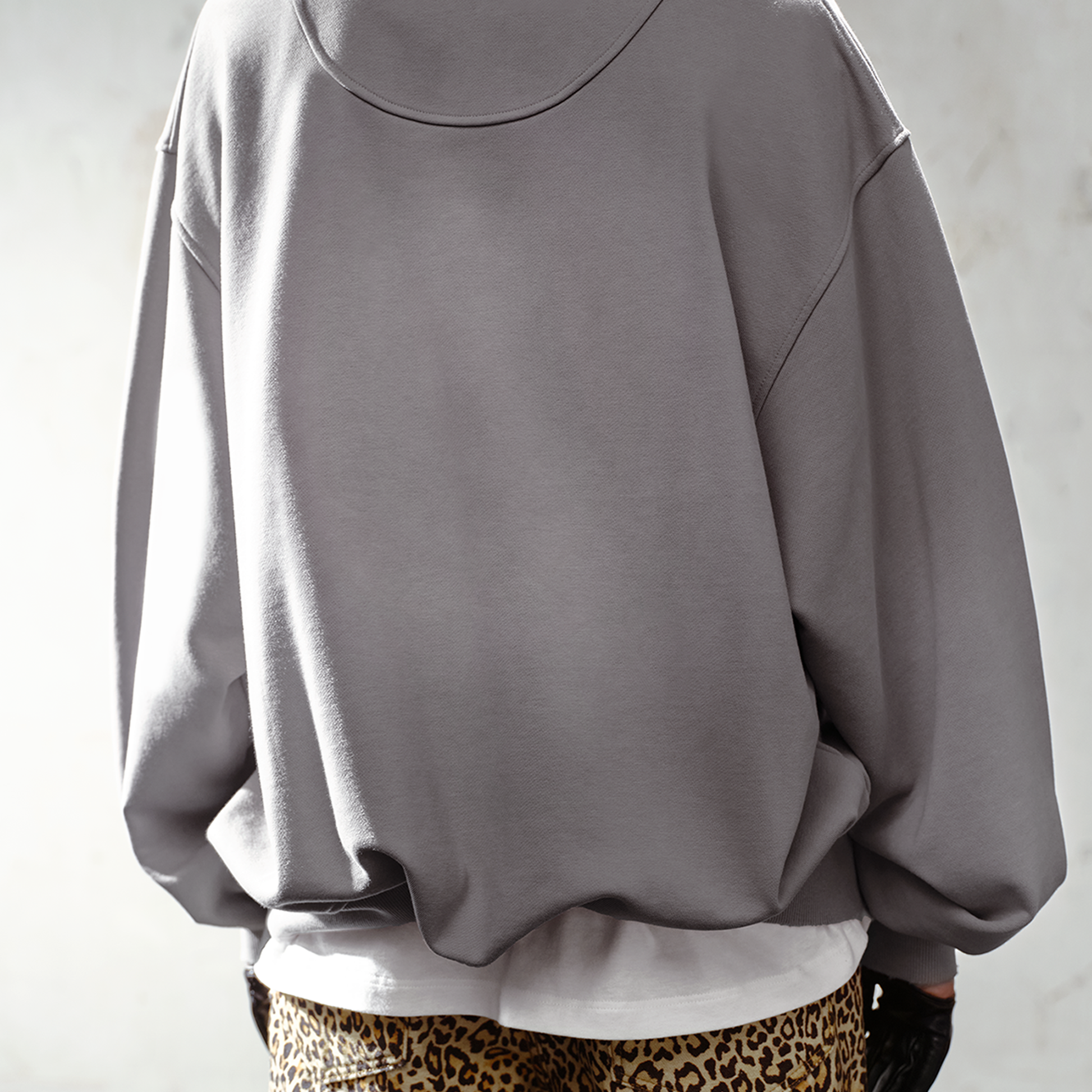 The sweatshirt silhouette and the washed-out, faded effect define the streetwear elements in the brand's image. The washed color and subtle wear marks create a natural vintage look. The cut offers a high degree of fit inclusivity and ensures comfortable wear. The chest features an angel-and-motorcycle pattern developed by the studio, combining romance with speed for a visually striking impact.