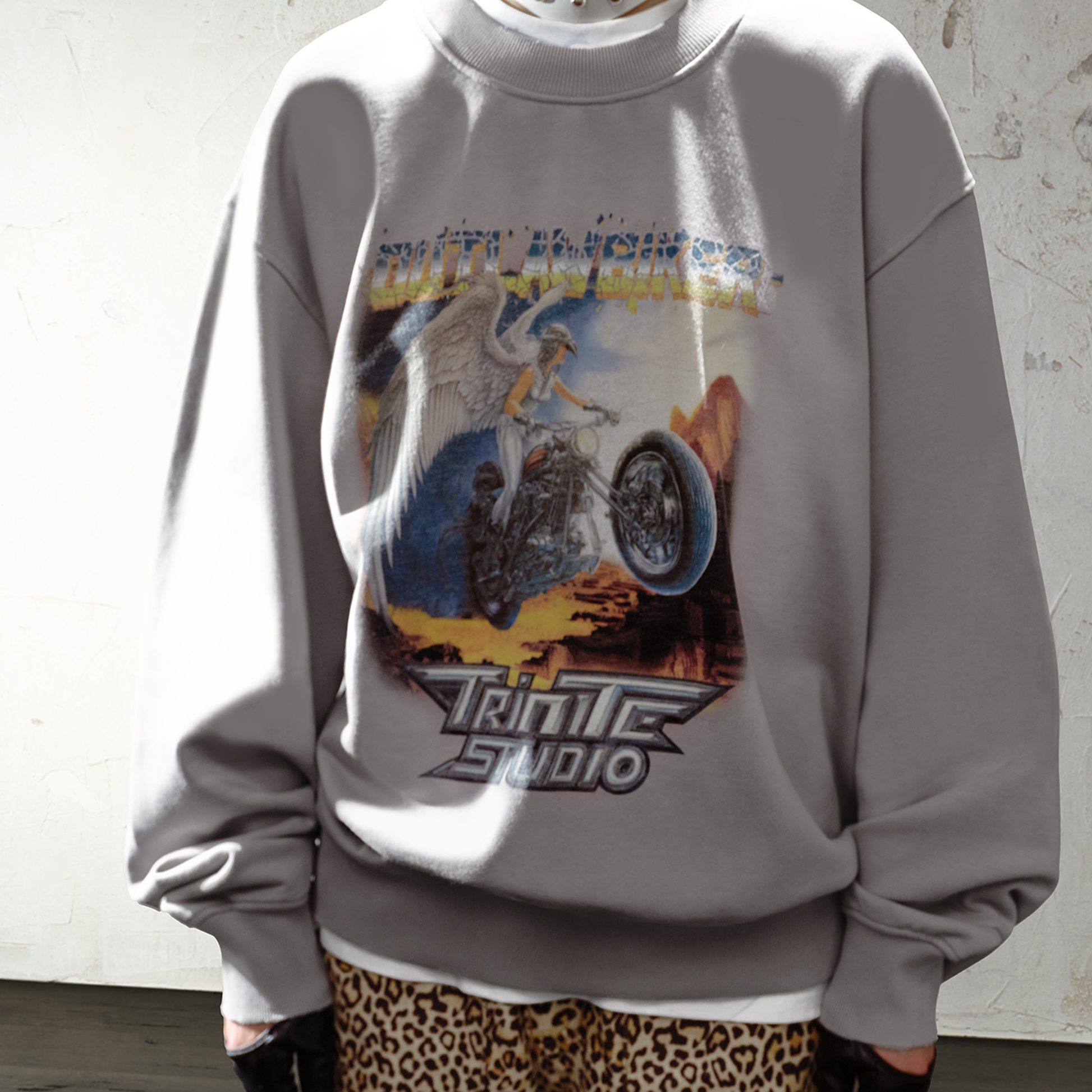 Grey Angel Motorcycle Print Oversized Sweatshirt