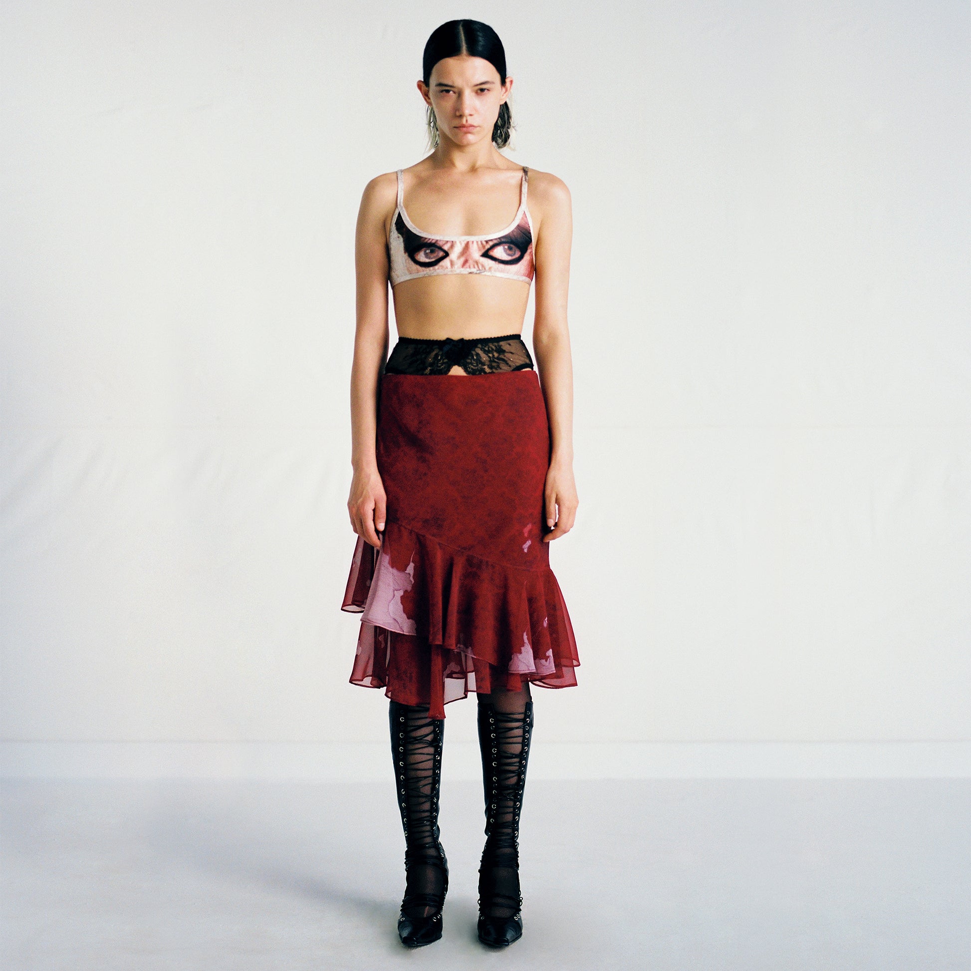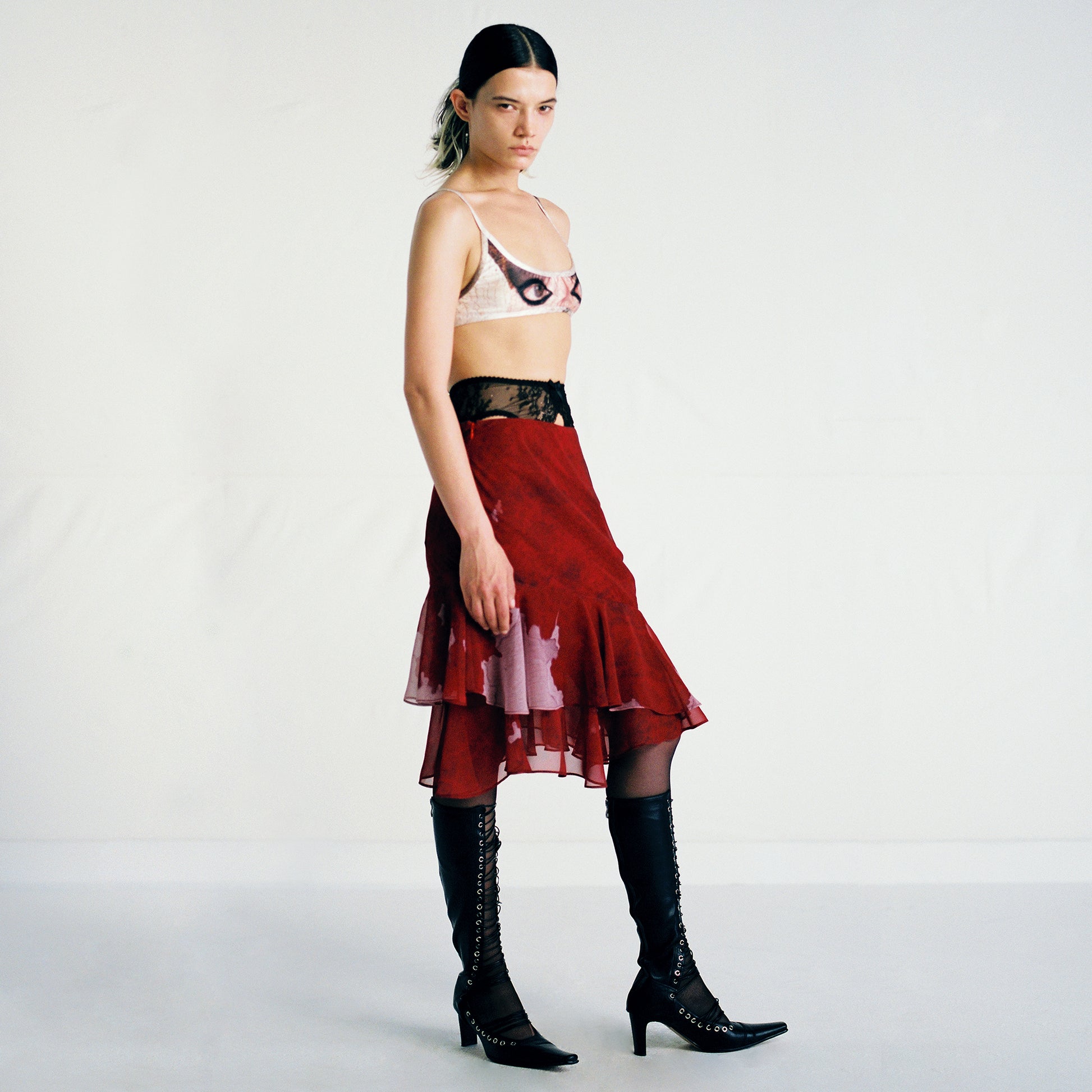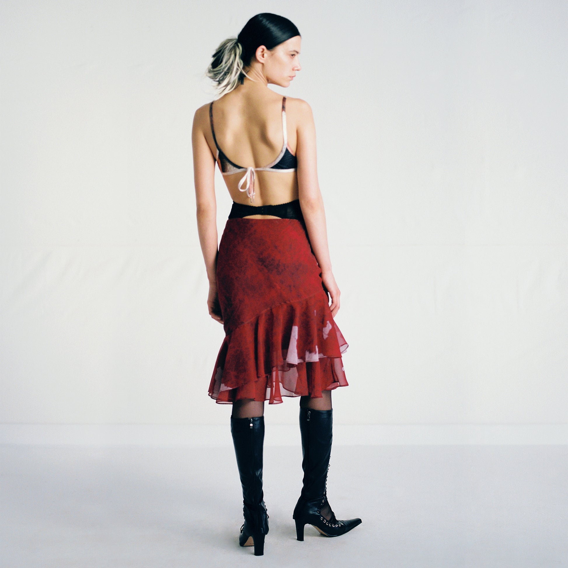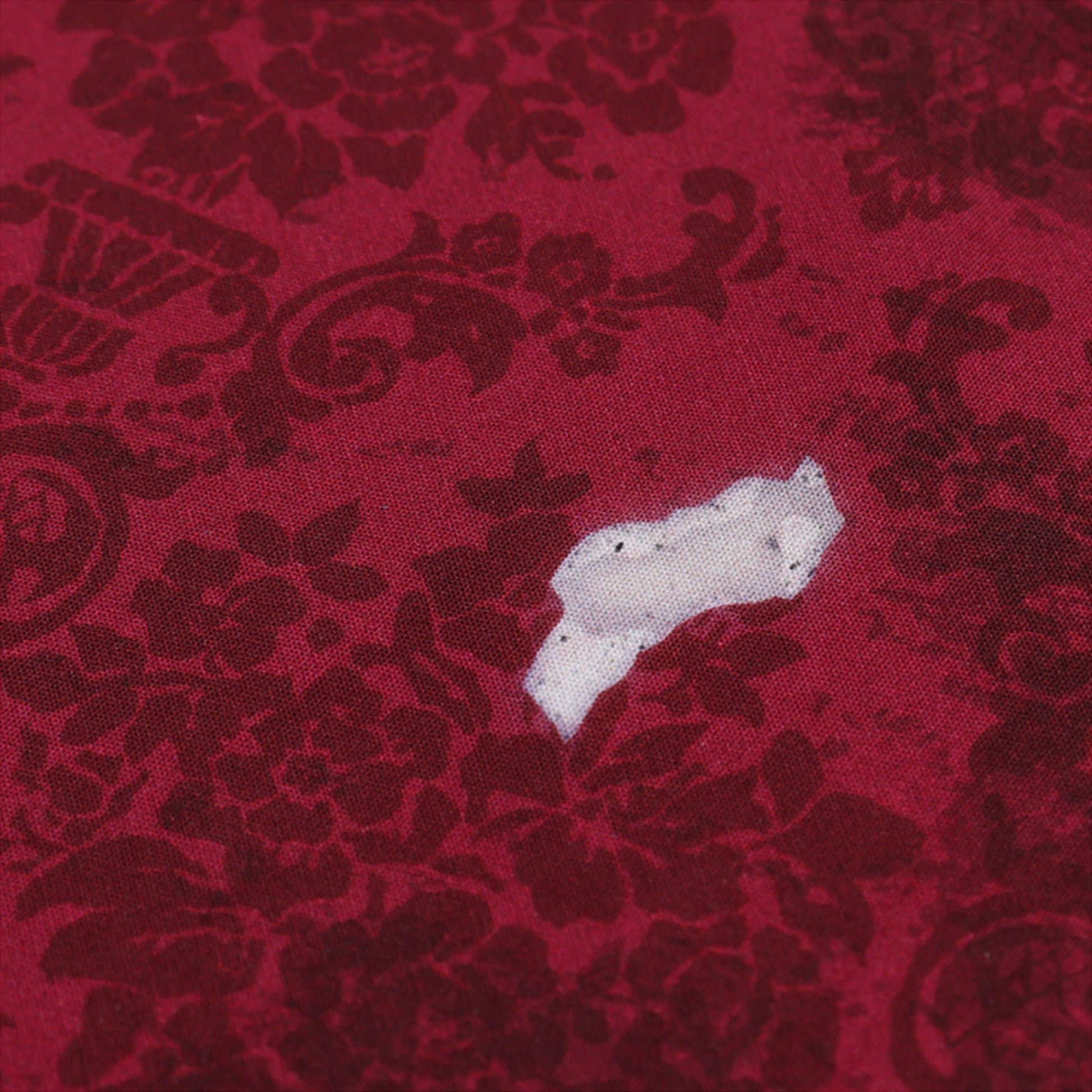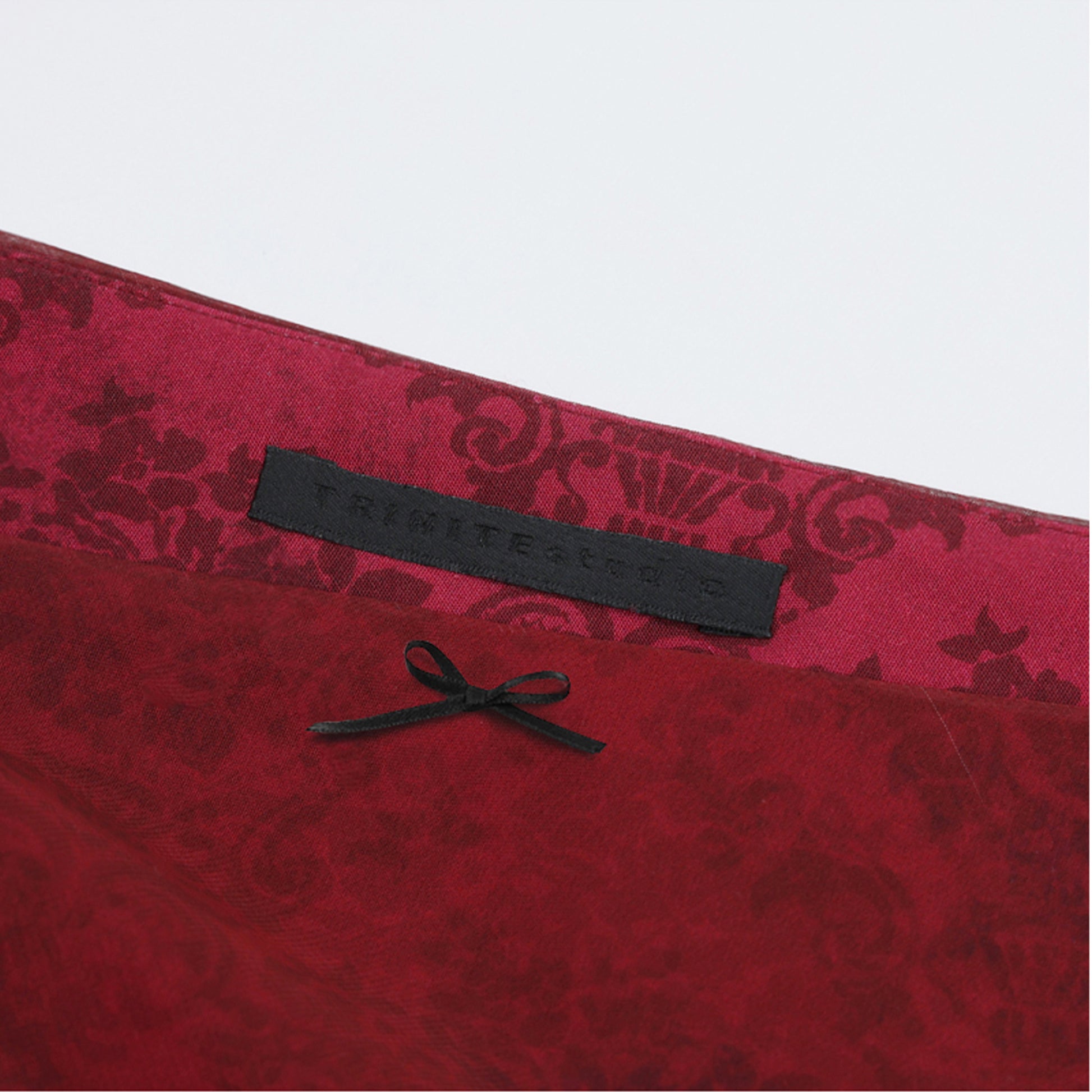 This design is inspired by the romantic imagery of veiled drapery and layers seen in classical Victorian paintings and sculptures. The pattern, created independently by TRINITEstudio, features classical European medieval floral designs combined with distressed and decayed wall textures, aligning with the brand's characteristic vintage and worn elements. The dark rose base color enhances the feminine romanticism.