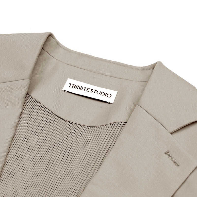 Light Khaki Paneled Sport Style Wide-shoulder Blazer