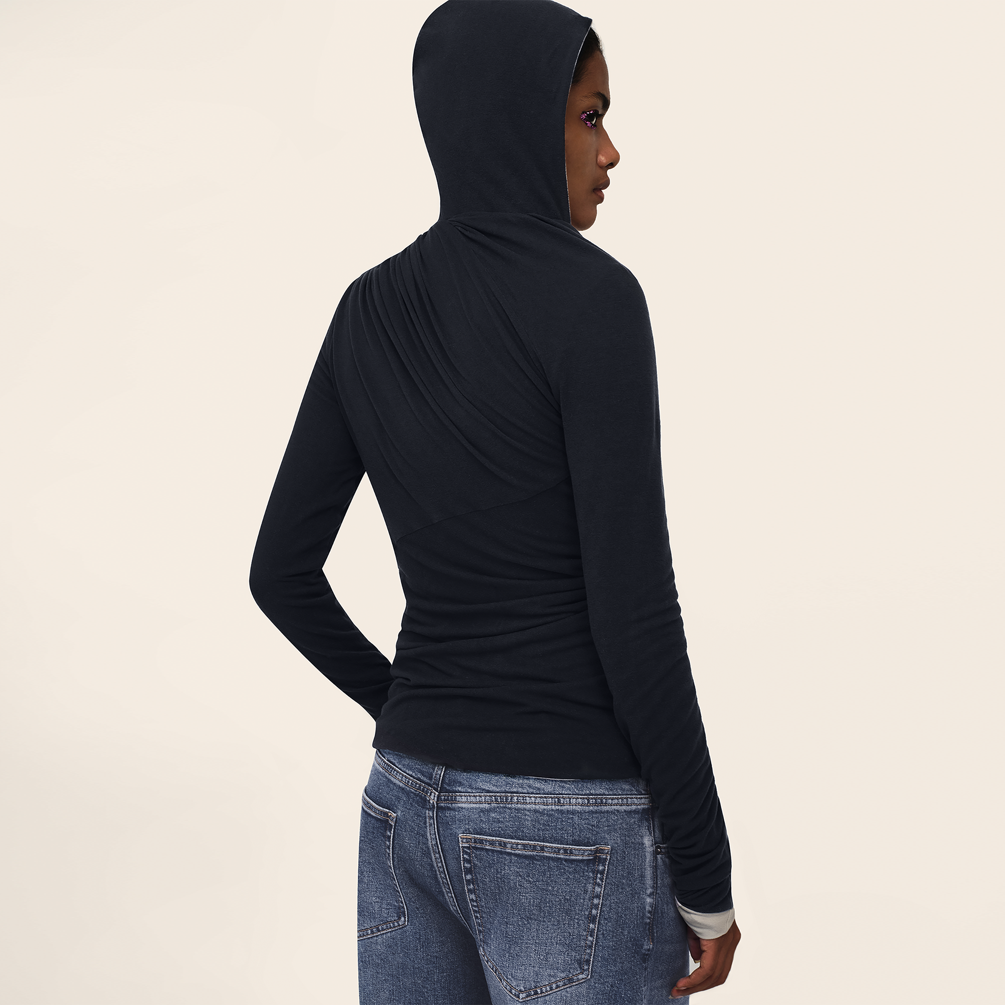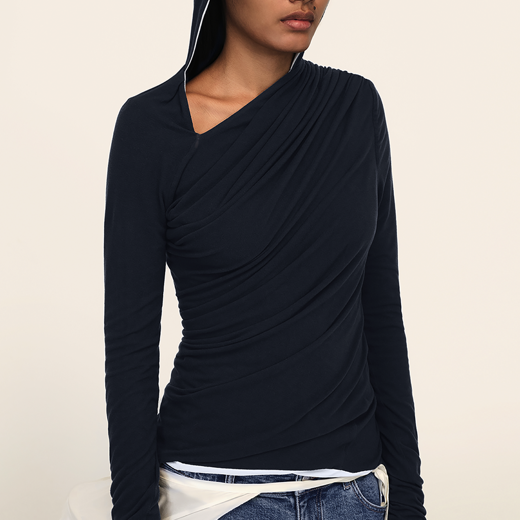 Navy & Hazy Blue Double Layer Hooded Long Sleeve Top