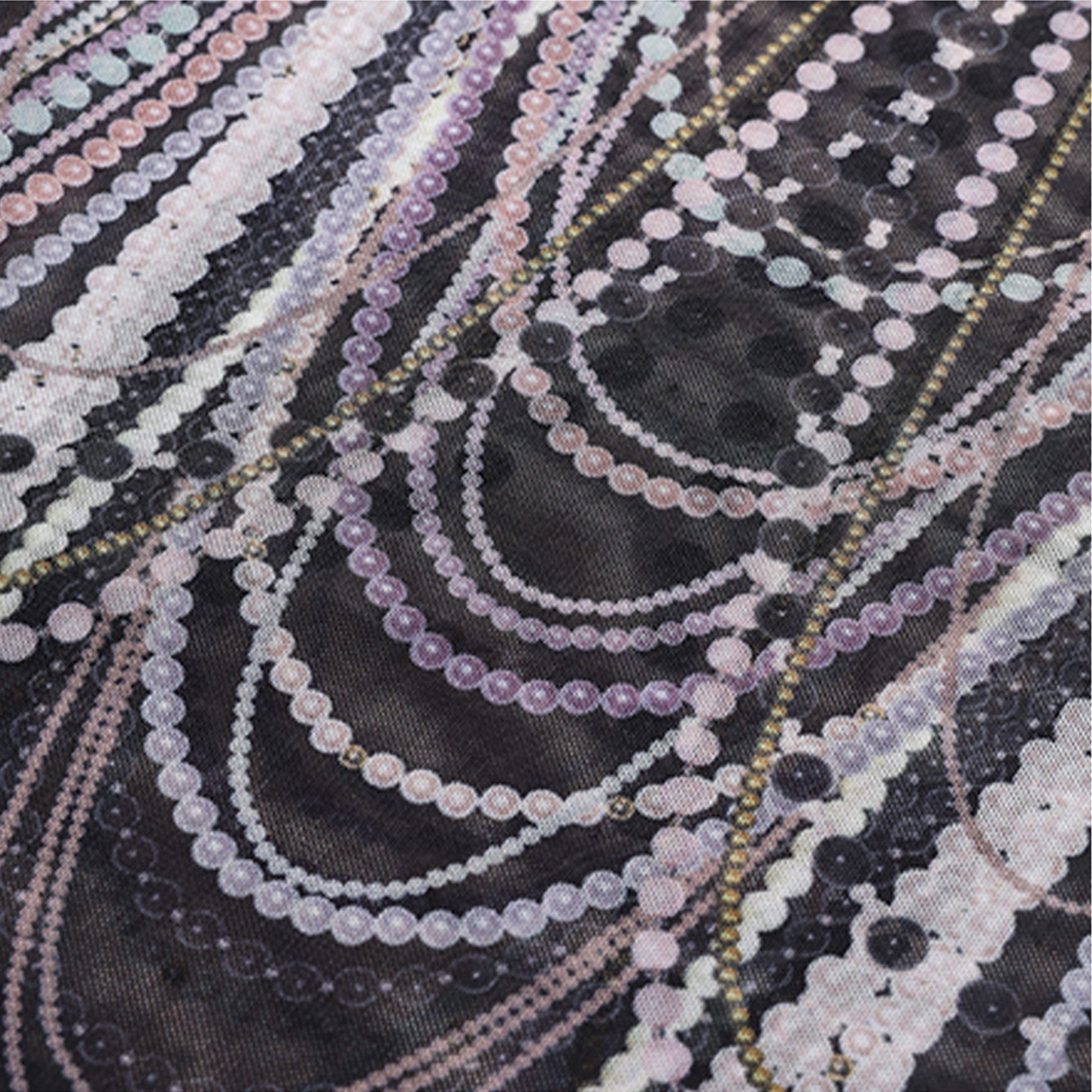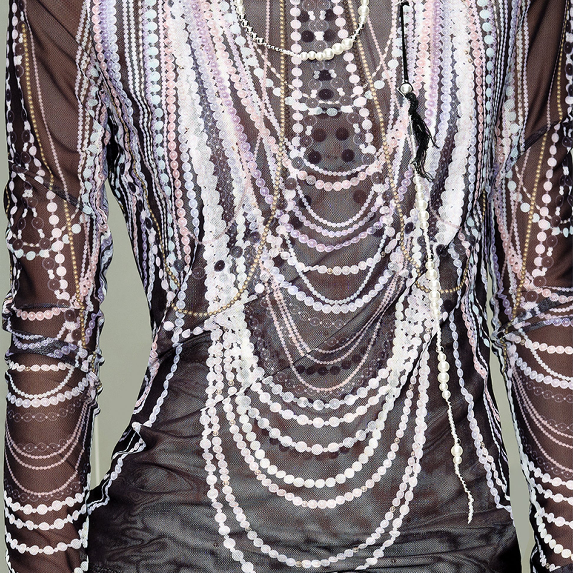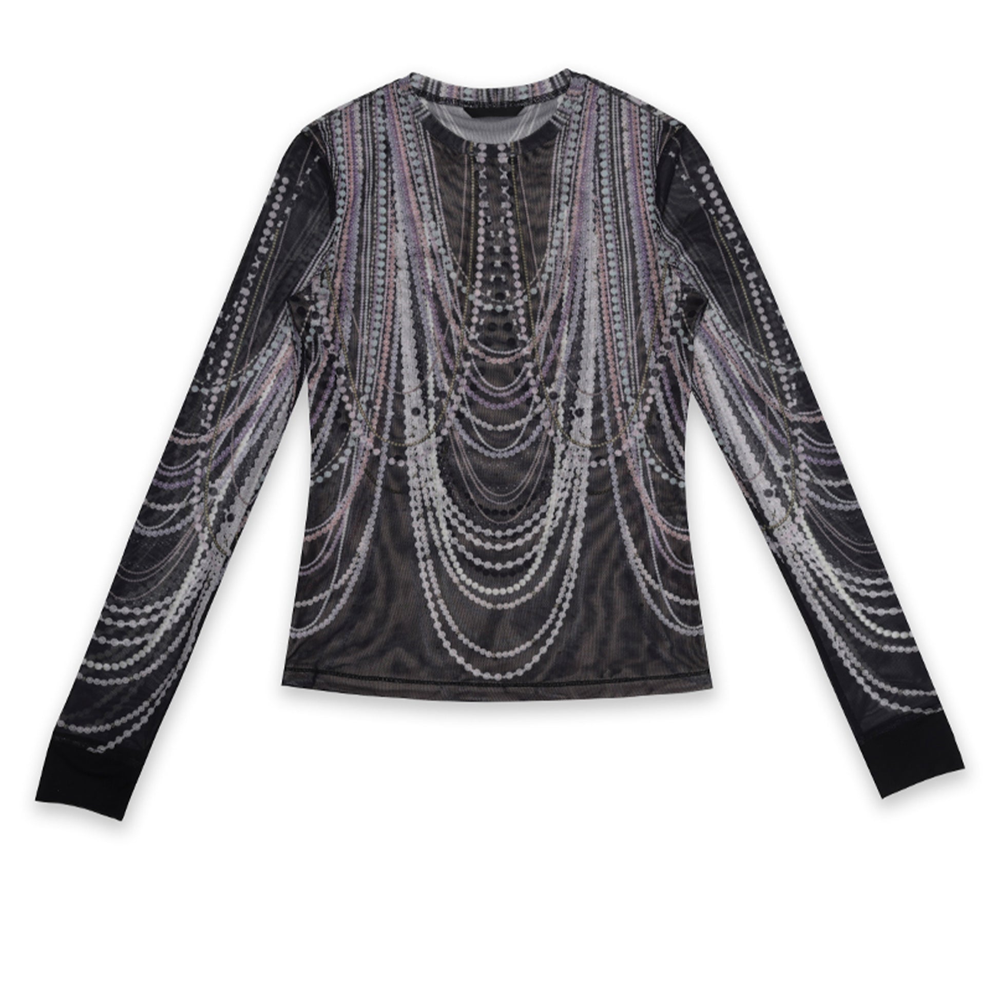 Pearl Overlay Print Mesh Long Sleeve T-Shirt