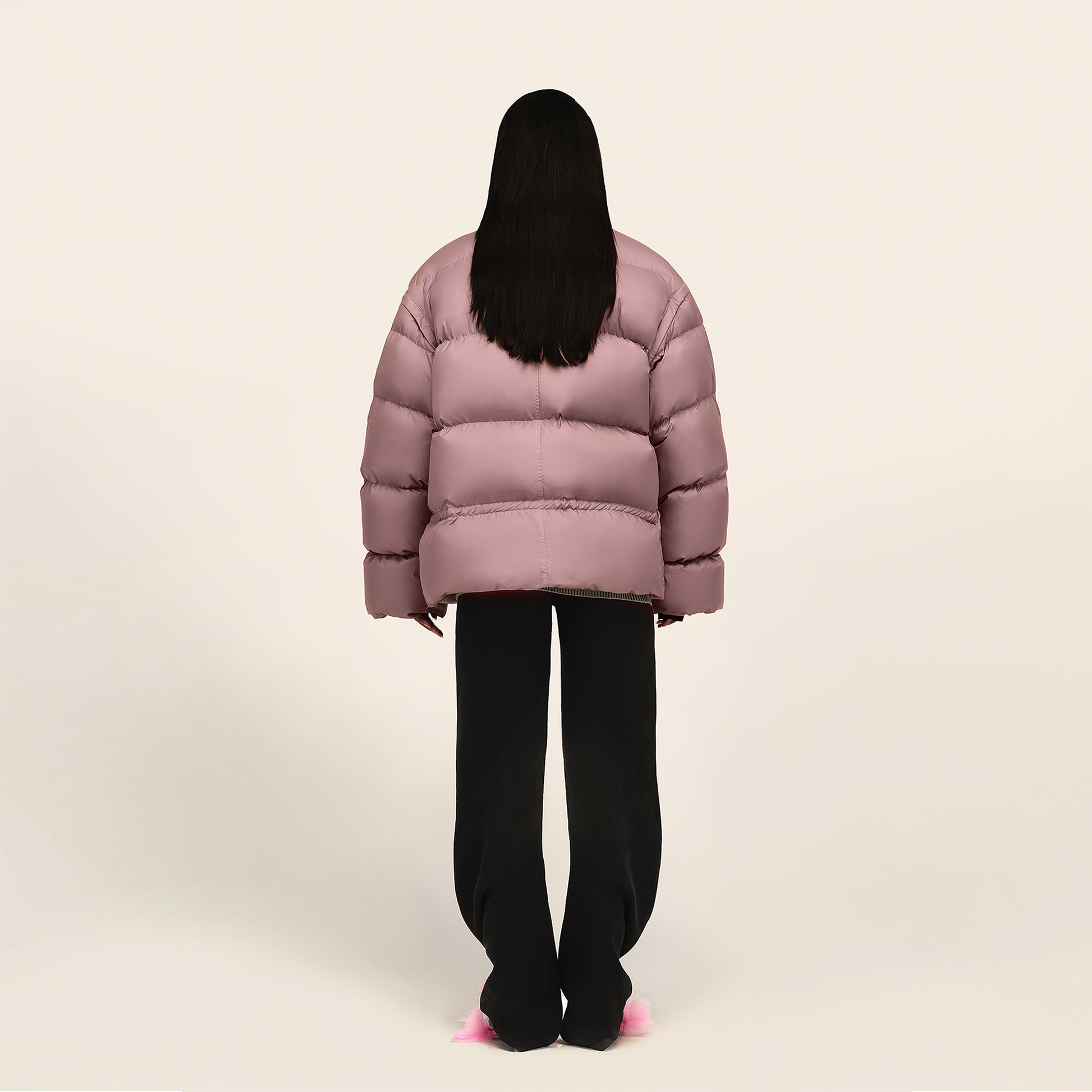 Pink Stand-neck Oversized Down Jacket