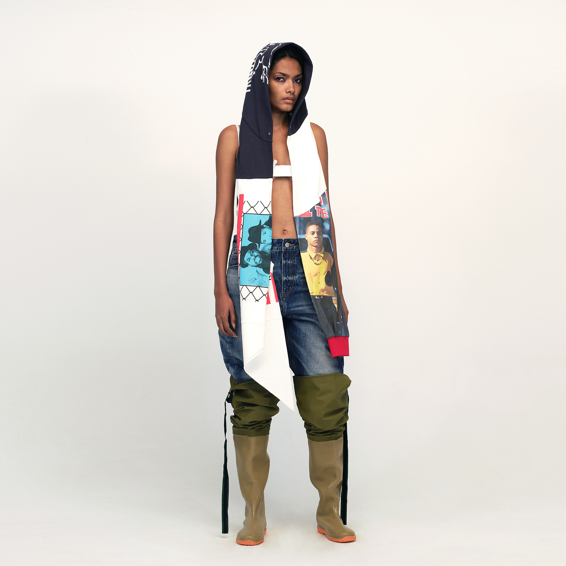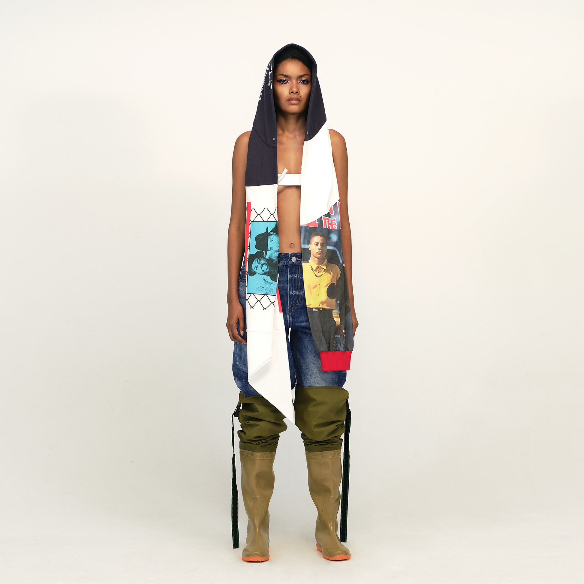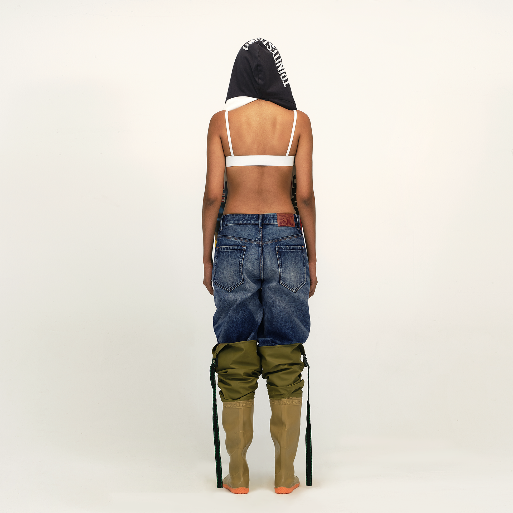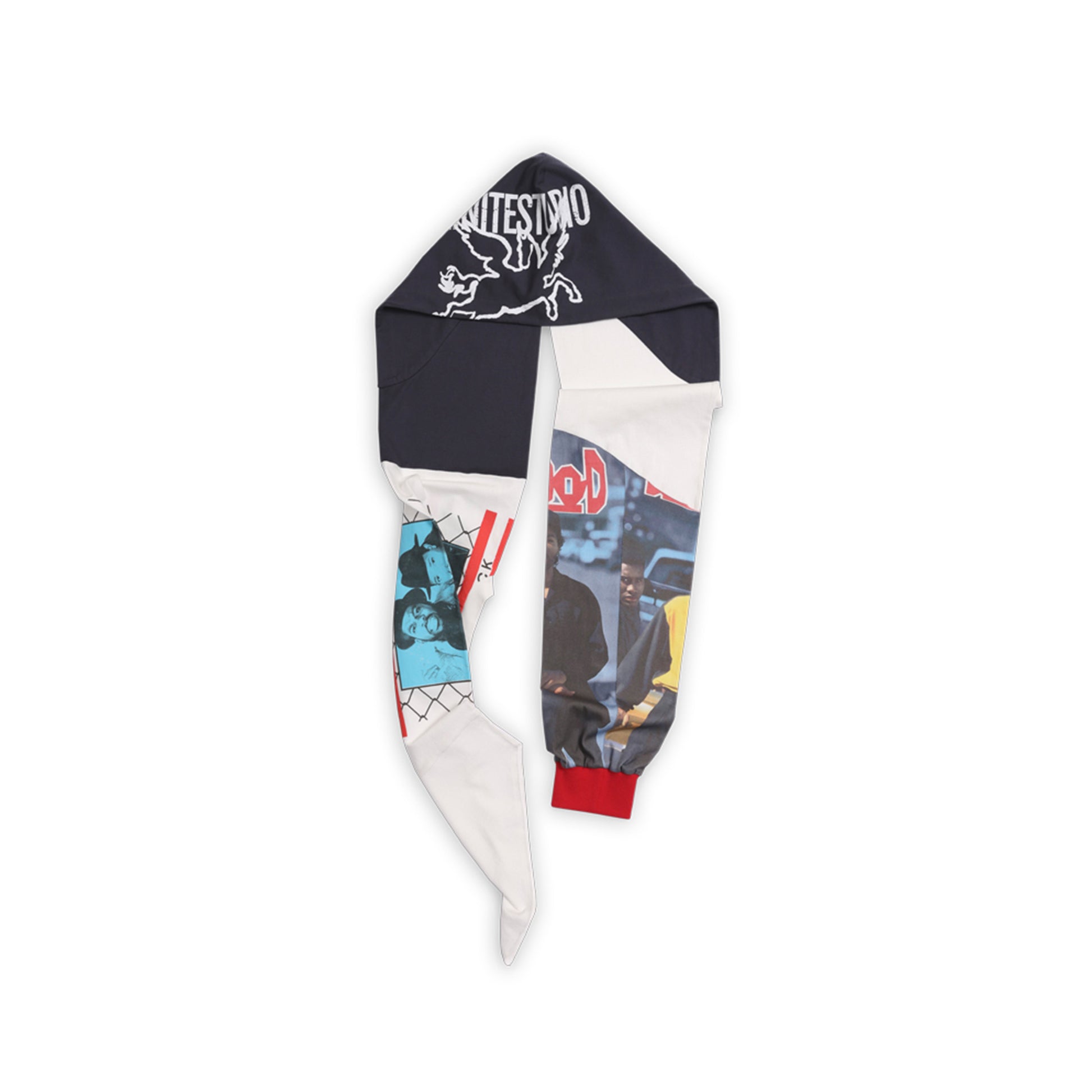 This hooded scarf follows the brand’s design philosophy of reusing fashion items, inspired by the deconstructed vintage tee. It combines street style with versatile styling options. The hood seamlessly transitions into the scarf, with one side extending into a sleeve and the other into the body, creating a unique scarf shape.