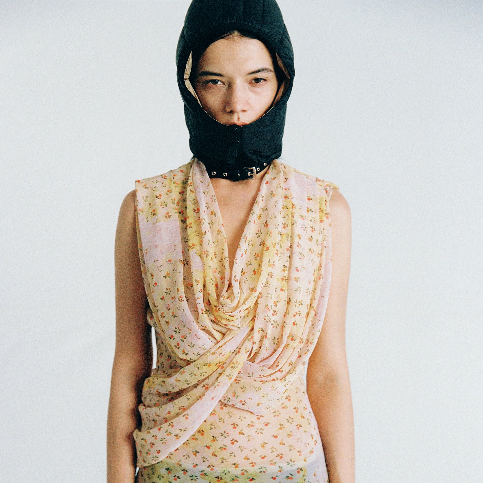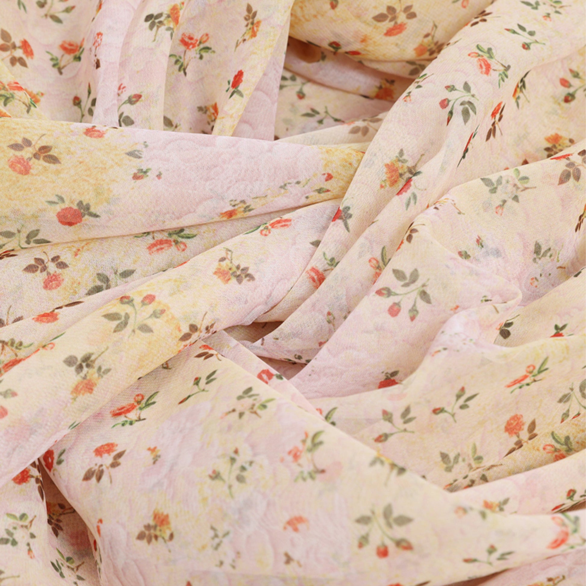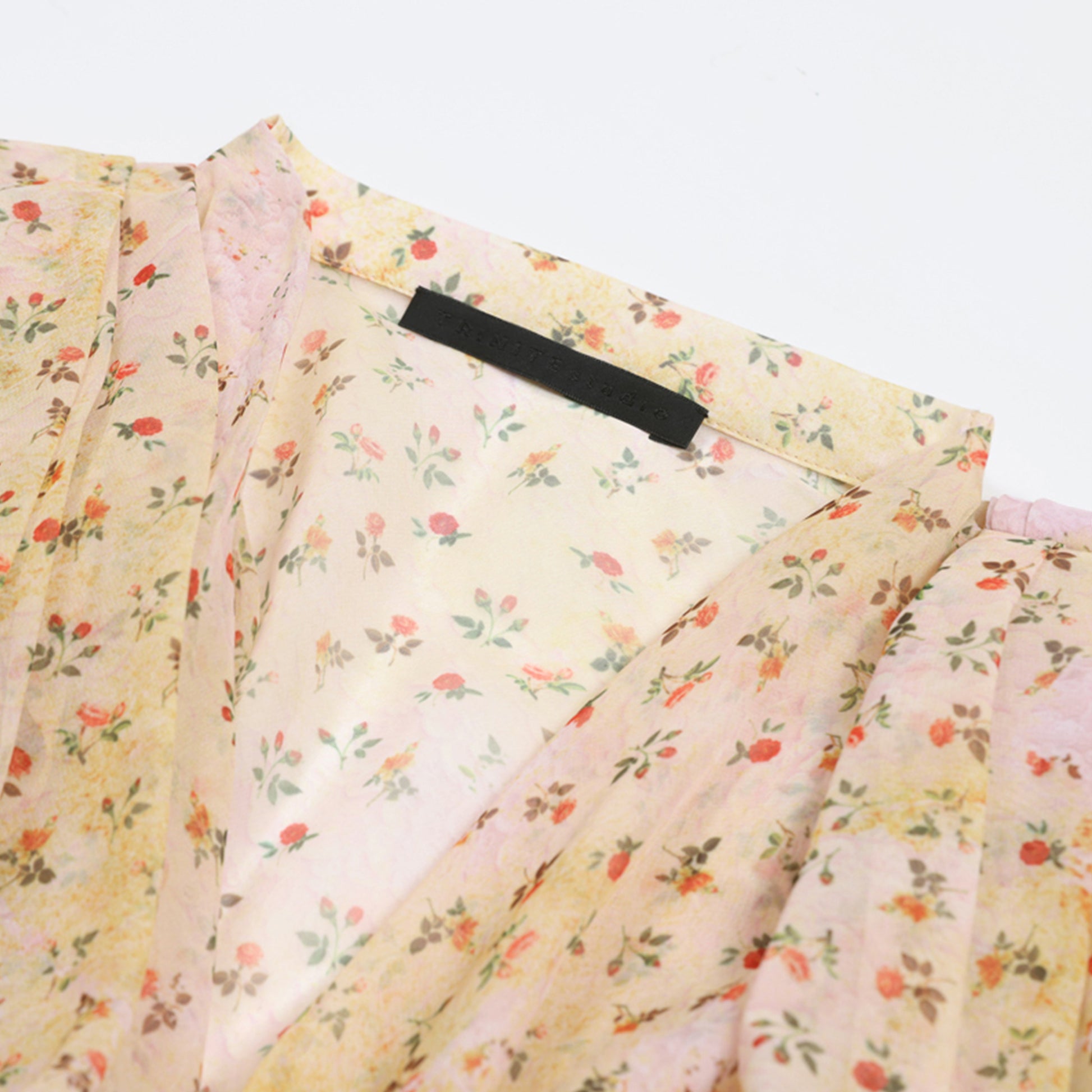 This design draws inspiration from the romantic imagery of veiled drapery and layers in classical Victorian paintings and sculptures. The pattern continues the brand's classic floral style, independently photographed and produced by TRINITEstudio, featuring eight different classic rose designs on a low-saturation yellow base fabric, with overlaid irregular distressed and rusty effects, breaking the girlish feel of the florals and adding street style and visual weight.
