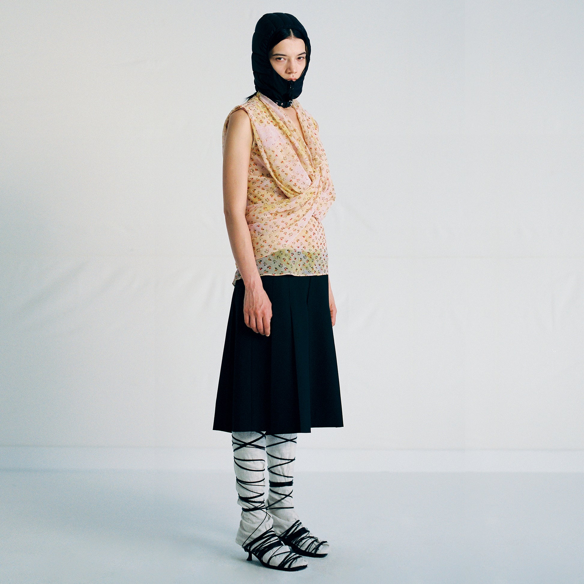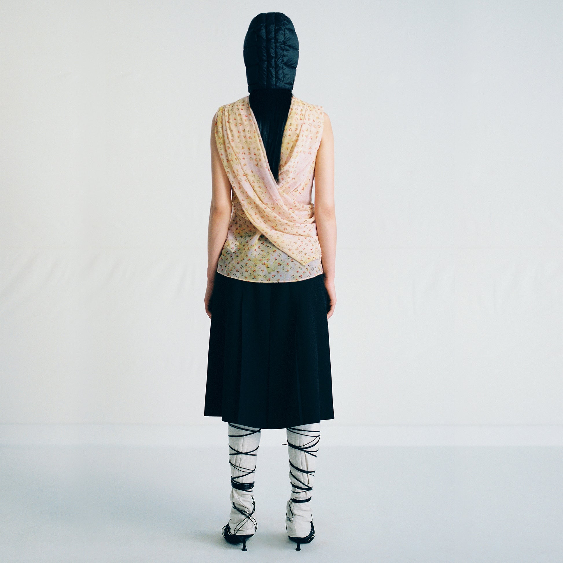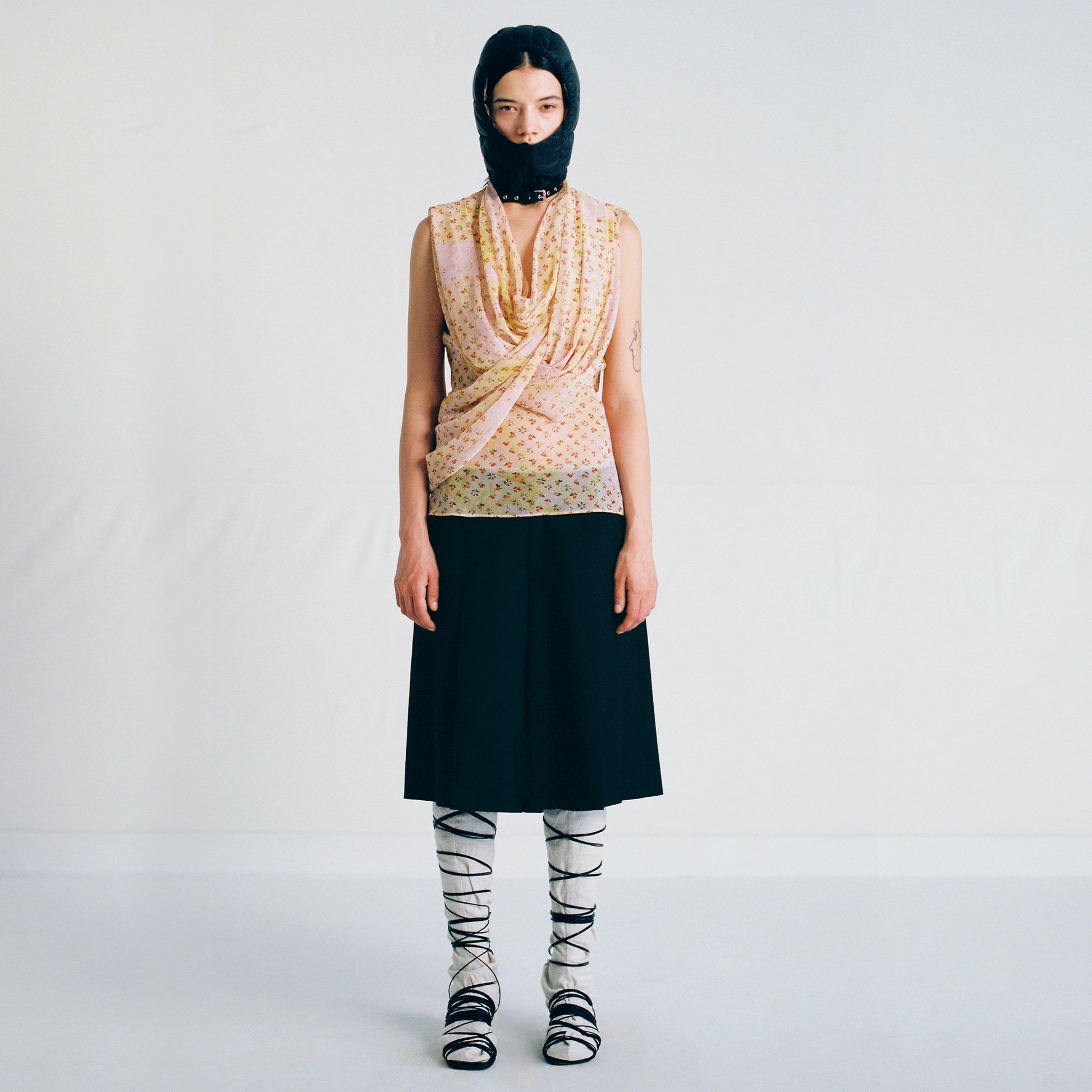 This design draws inspiration from the romantic imagery of veiled drapery and layers in classical Victorian paintings and sculptures. The pattern continues the brand's classic floral style, independently photographed and produced by TRINITEstudio, featuring eight different classic rose designs on a low-saturation yellow base fabric, with overlaid irregular distressed and rusty effects, breaking the girlish feel of the florals and adding street style and visual weight.
