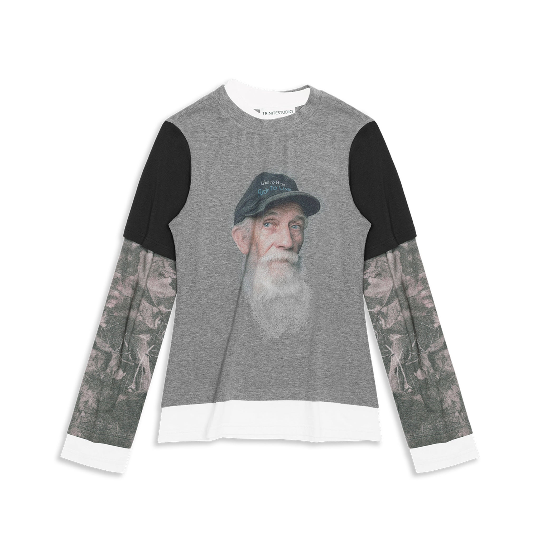 Vintage Pattern Printing Double Layer Long-sleeve T-shirt