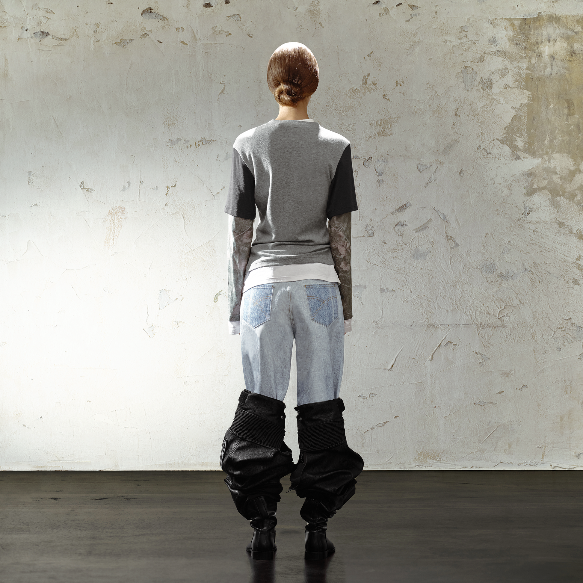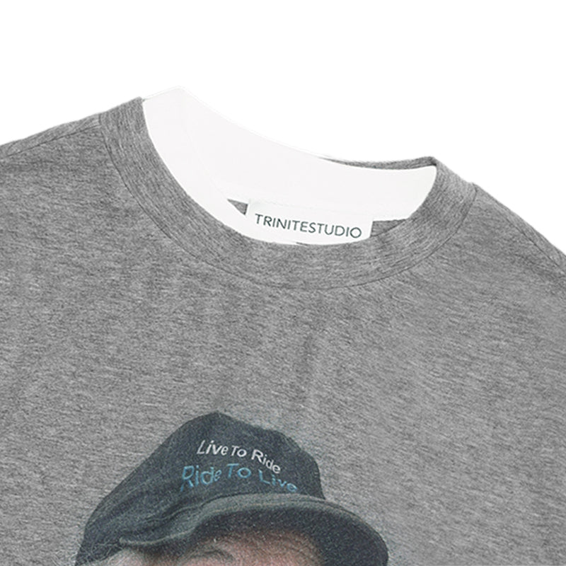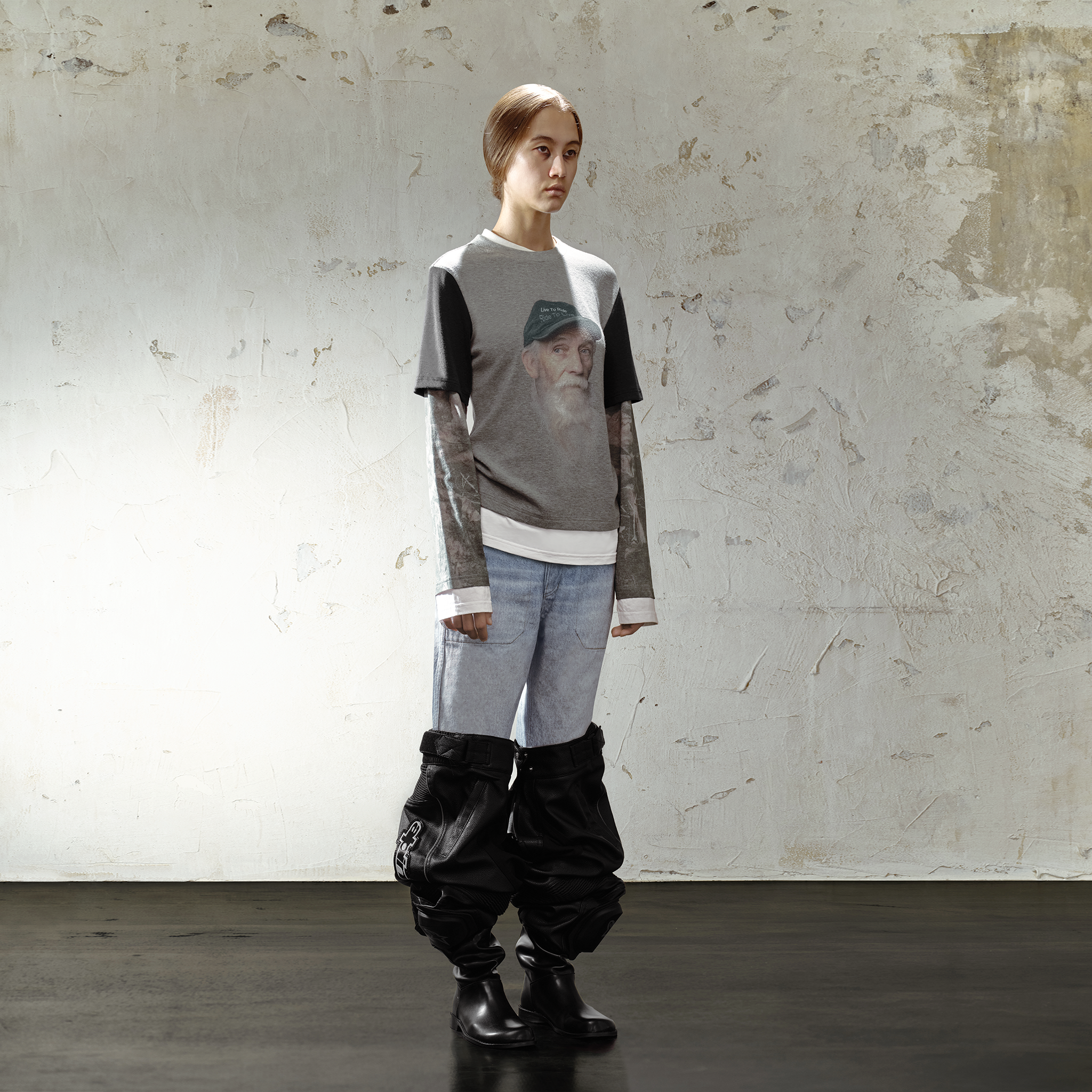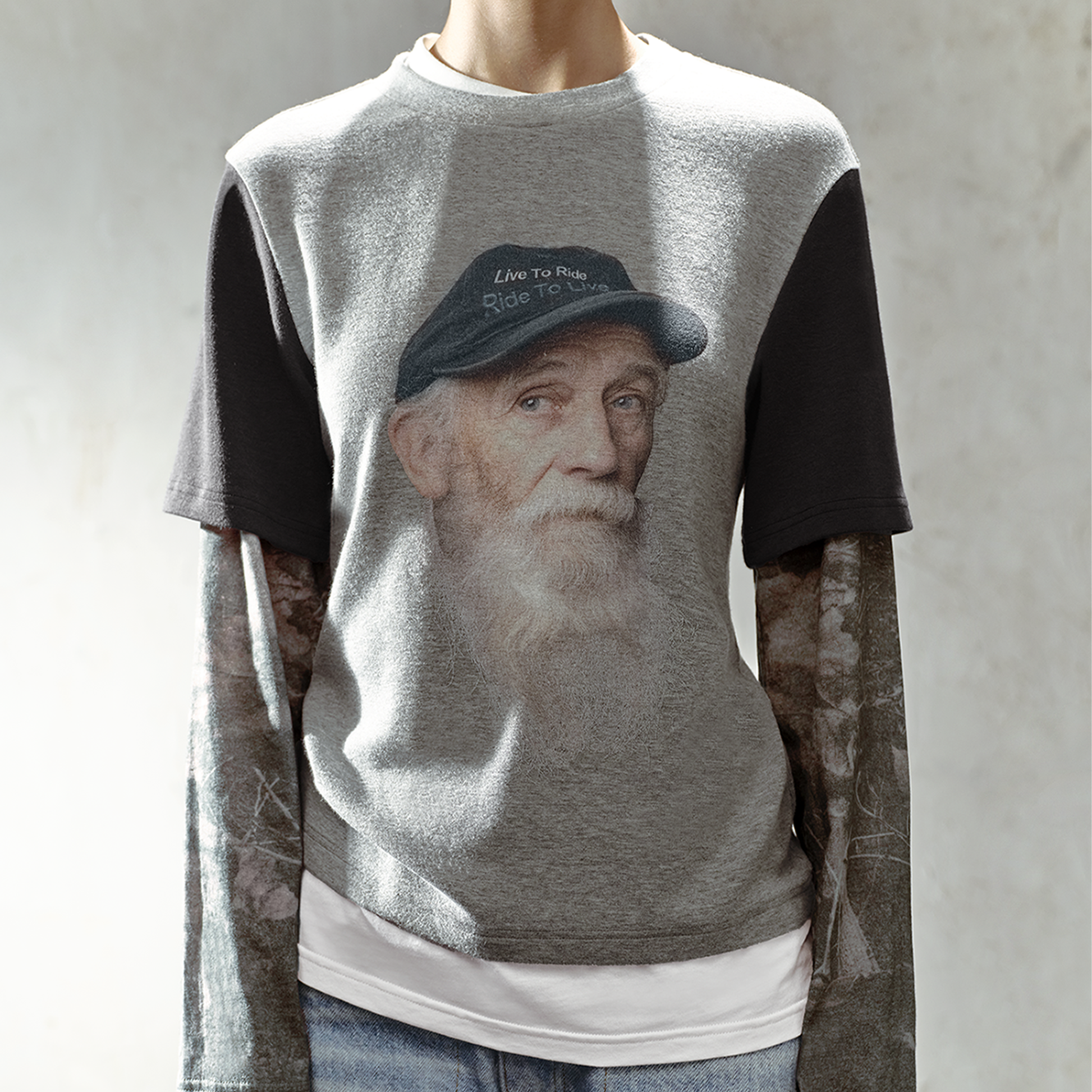 This top creates a visual layered effect, with the street-style portrait print on the chest coordinating with the camouflage print on the sleeves for a bold and dynamic look. The main fabric offers stretch, ensuring comfort and freedom of movement.