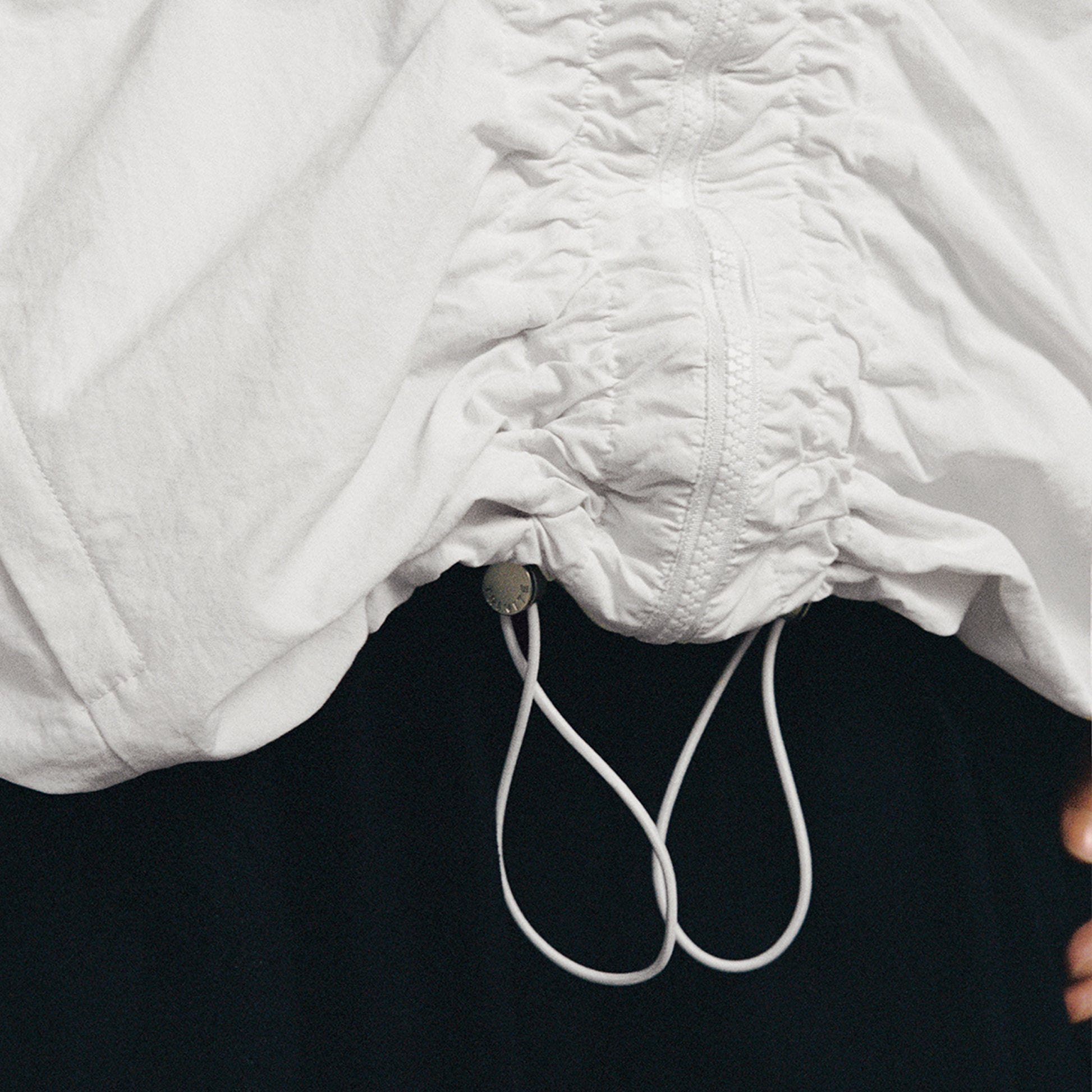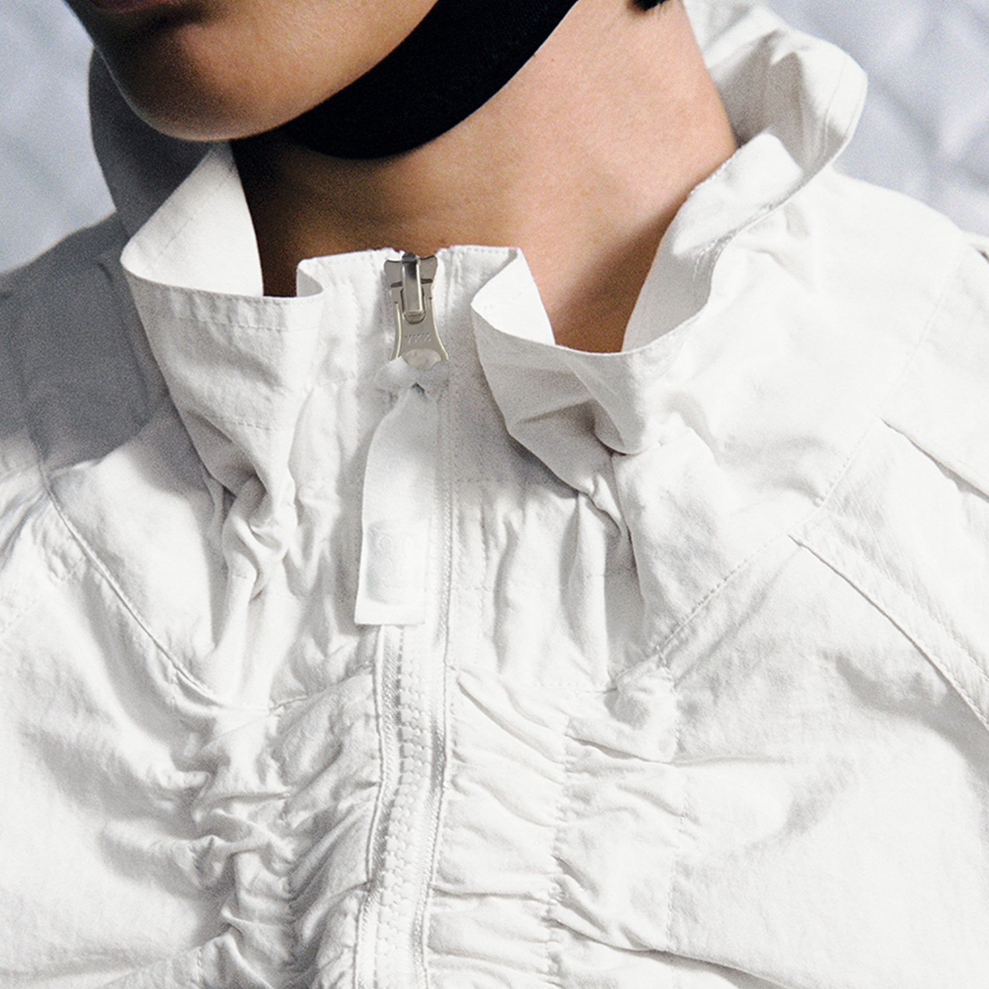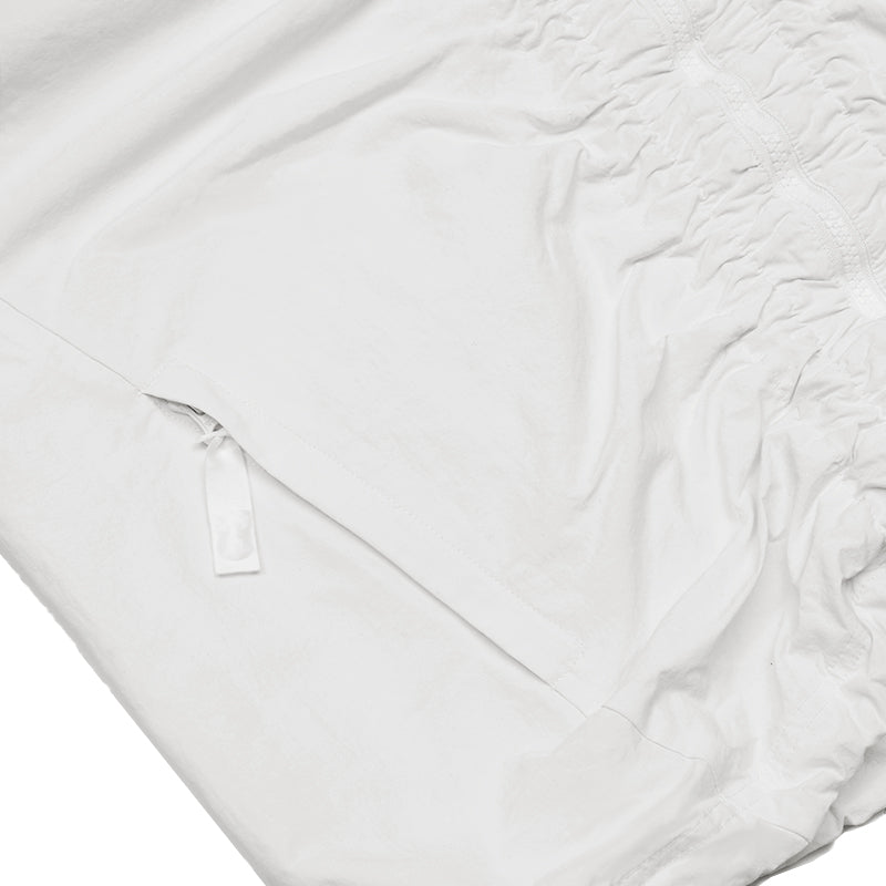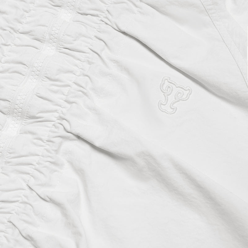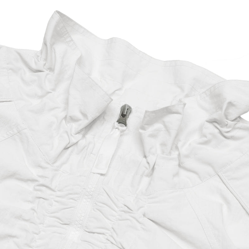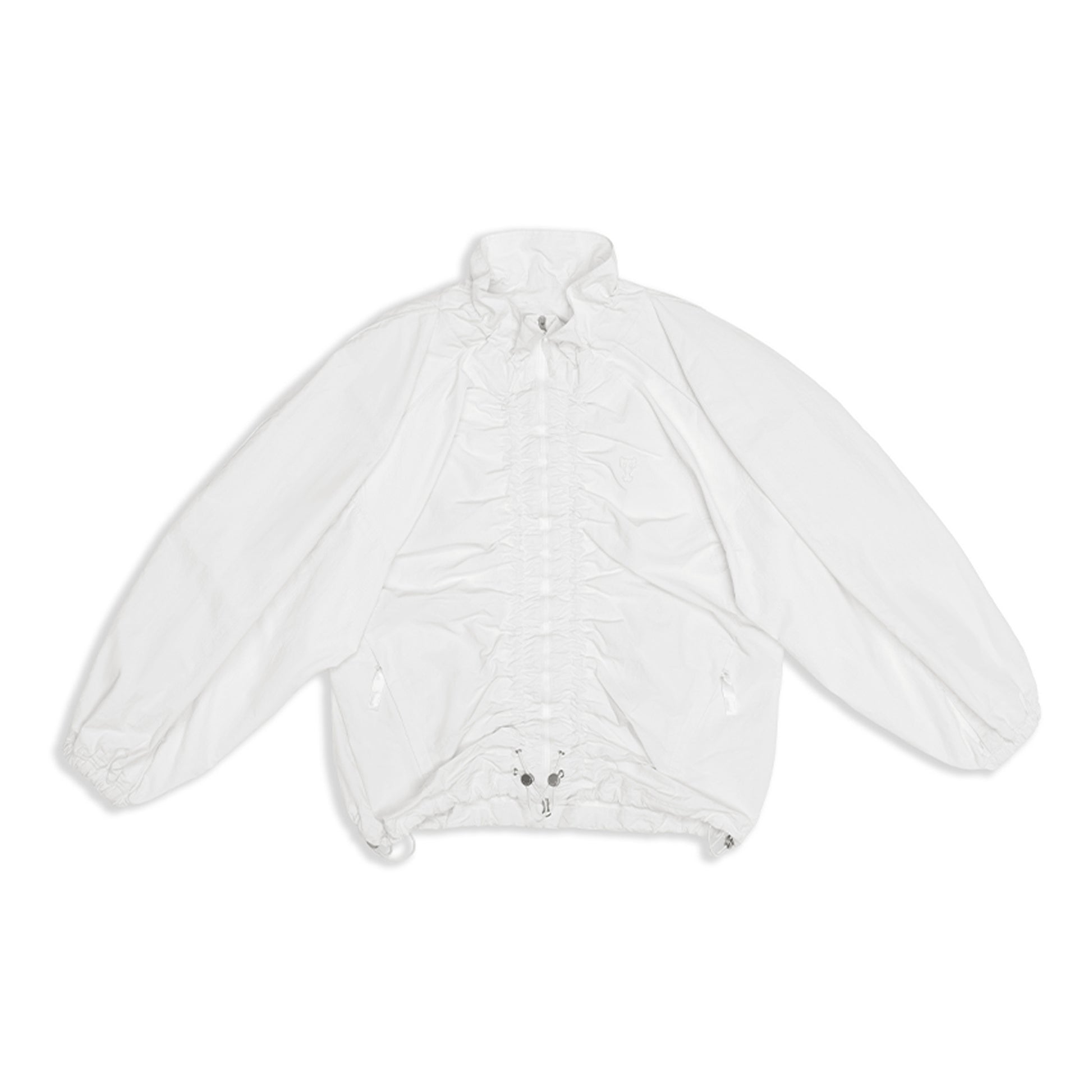 This sporty jacket reinterprets athletic aesthetics through a fashion lens, featuring sculpted sleeve construction and the brand's signature elasticized pleat details for enhanced mobility. Perfect for everyday wear or casual occasions, the clean white exterior radiates modern energy while striking an ideal balance between functionality and distinctive style—making it an essential wardrobe staple.